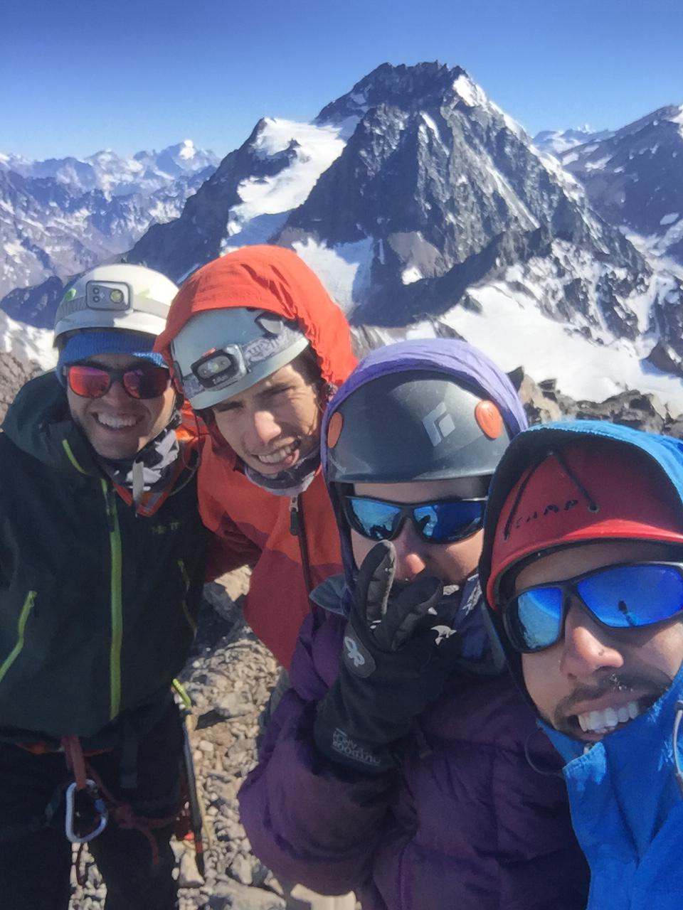 4 montañistas RAMUCH en la cumbre del Morado El sábado 5 de diciembre, cuatro deportistas de la Rama de Montaña de la Universidad de Chile (RAMUCH), comenzamos nuestra aventura en el privado acceso al Valle de las Arenas, Cajón del Morado. Después del pago de dos arbitrarios cobros, Martina, Sebastián, Nicolás e Ignacio, finalmente emprendemos nuestro camino internándonos por un costado del estero El Morado. El sendero transcurre por el fondo del valle al lado oeste del río, ganando altura poco a poco.