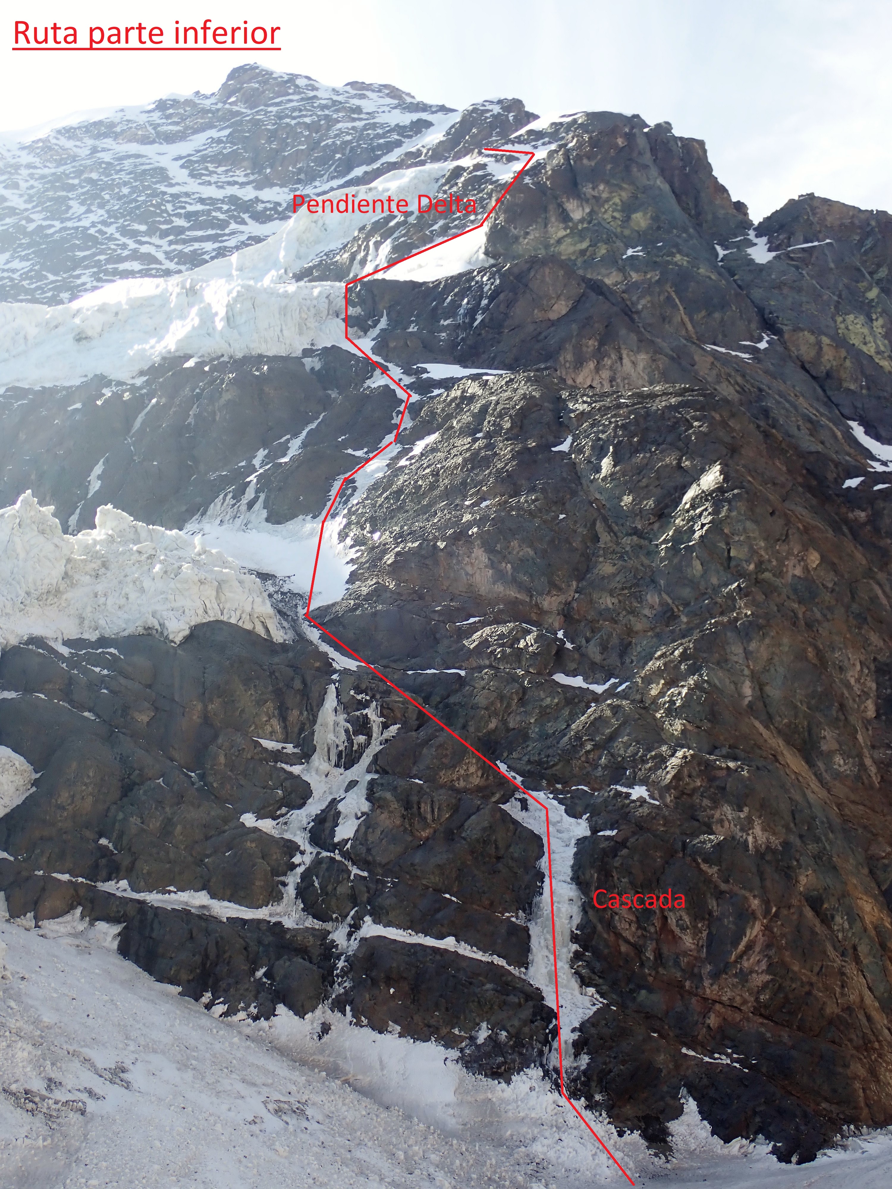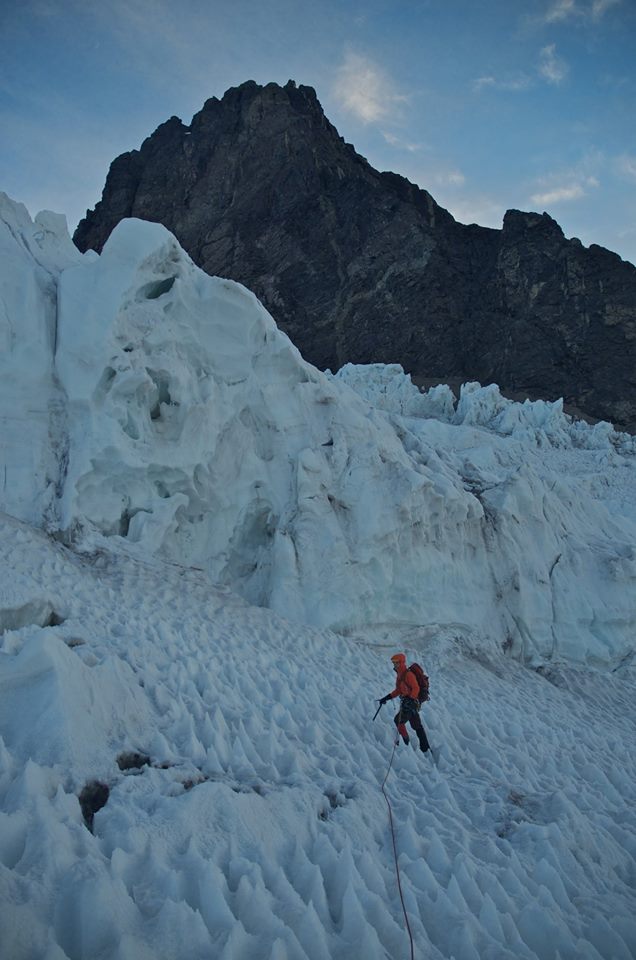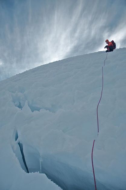 En el glaciar, buscando pasada por la derecha