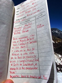 Hicimos un campamento intermedio bajo el Escorpión. Aconsejable llevar un lápiz para reemplazar el que encontramos en mal estado con el libro de cumbre. Esta ruta es realmente maravillosa y cumplimos un sueño de 20 años con Felipe.