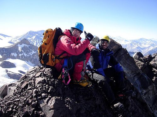 Álvaro y Pablo en la cumbre. Hermoso cerro, costó un poco pillar la pasada de las grietas para montarse al glaciar. El campamento alto lo armamos a los 4.700 m. Hicimos cumbre el tercer día a las 09:40 y luego una laaaaarga bajada que nos dejó a las 20:30 en los autos.