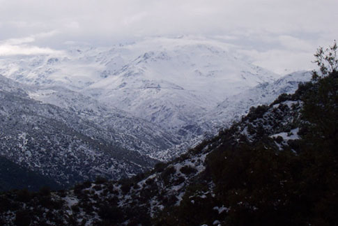 El Nevado de los Ángeles tras las estribaciones del Carpa