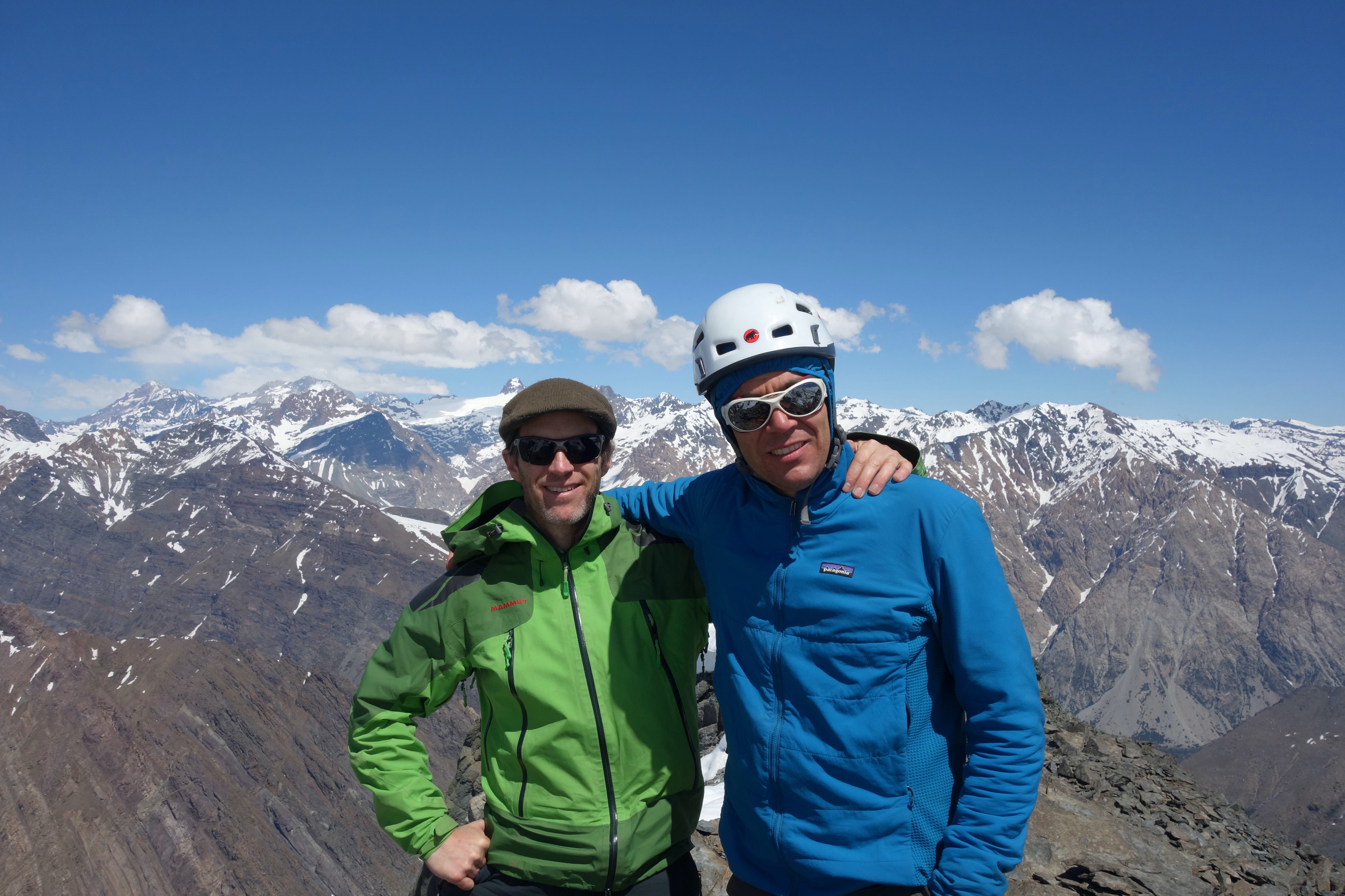 Cumbre del Morro de la Torre. Otra cumbre de la cordada de más de 20 años de Ismael Mena y Lucho Izquierdo. Un punto con buena panorámica para ver el enjambre de ríos y valles que forman el Cachapoal: Cipresito, Cortaderal, Las Leñas y el mismísimo. Fecha: sábado 26 de septiembre 2020.