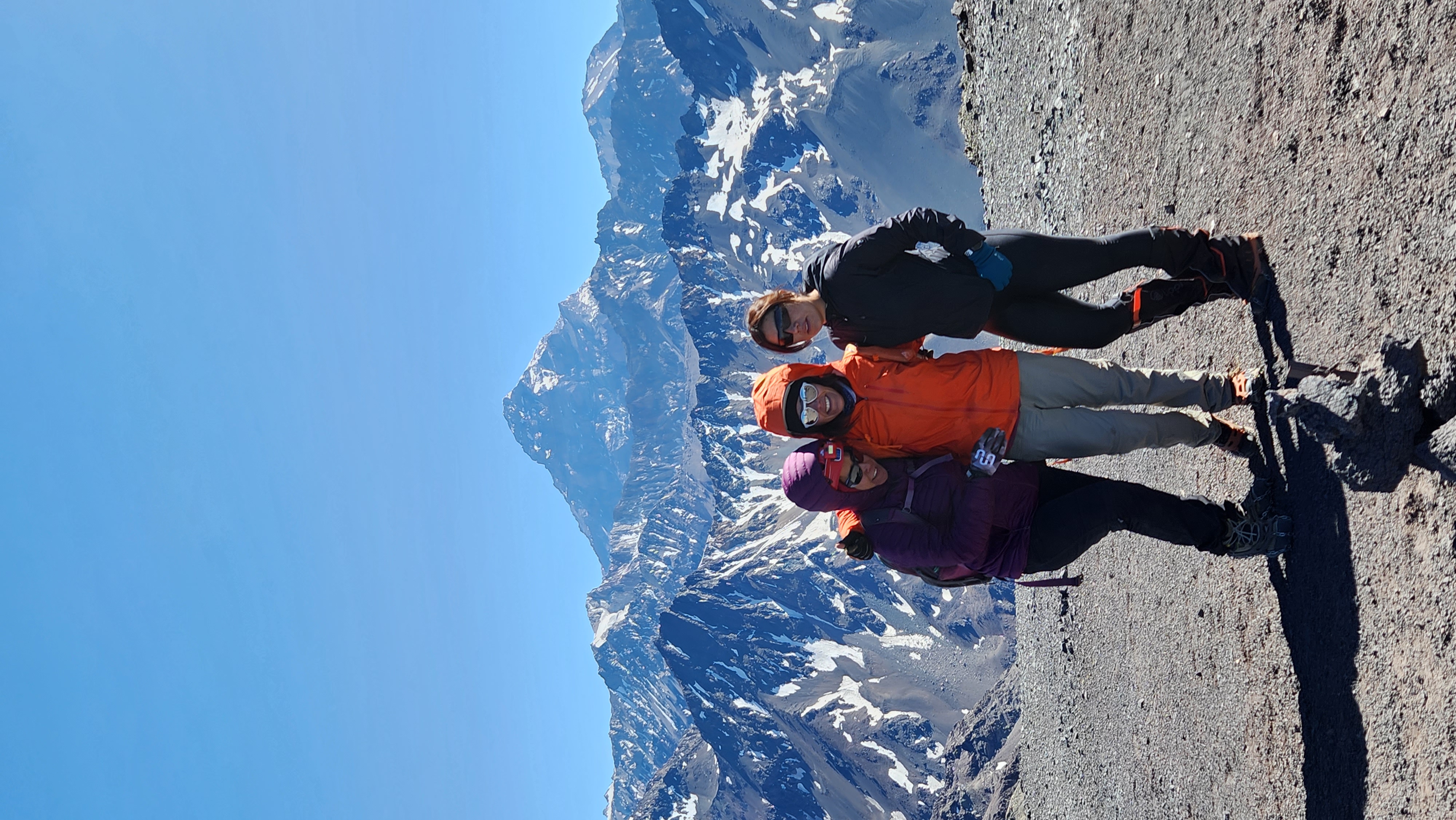 hermosas vistas a varios cerros emblemáticos por el sur Ojos de Agua, al NE el colosal Aconcagua, al N Parva del Inca, al O aguja. Ruta por el filo oeste donde se alcanza la primera cumbre meseta sur, para luego coronar por el tramo norte que conecta con su hermano mesetas norte de menor altitud.
