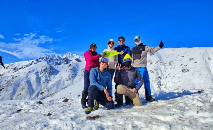 Hermosa cumbre, había nevado días previos, por lo que comenzamos caminando entre el barro y agua nieve, a medida que ibamos subiendo sobre los 1200 m la nieve comenzó a aumentar y a endurecerse, armamos campamento a los 1900 m, al día siguiente comenzamos