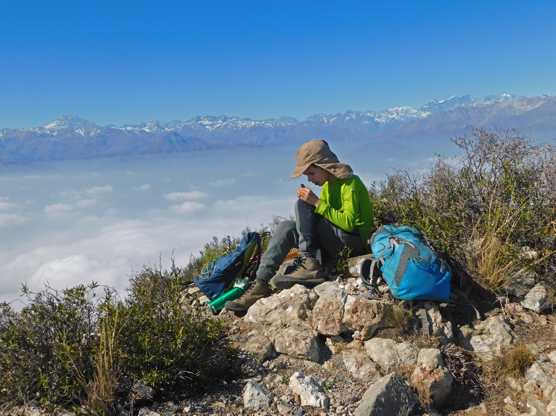 Subimos desde el condominio Hacienda Rinconada. La ruta asciende casi directamente a la cumbre. Nos tocó un día al principio nublado, pero a medida que subimos se despejó mientras abajo se mantuvo cubierto, por lo que pudimos tener muy buenas vistas de las cordilleras de los Andes y de la Costa. Lamentablemente la cumbre, que tiene una antena, está con mucha basura. Los cerros se veían bastante secos. 3 horas de subida a la cumbre y dos de bajada.