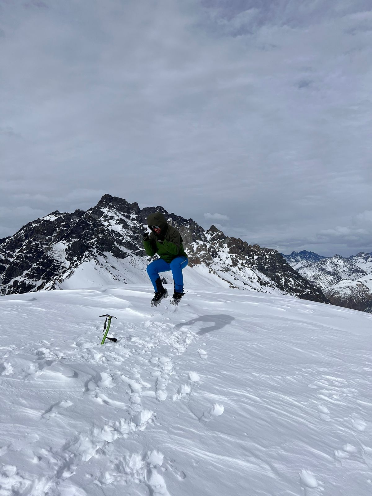 Hermoso cerro, las vistas increíbles. Aprovechamos la ventana de tiempo, ya que comenzaría a llover y nevar a las 17 horas de ese día, nos acernamos la noche anterior a Rancagua, no logramos dormir nada, al día seguiente salimos a las 4 am en dirección Coya, de ahi al sector a Las Leñas, comenzamos a subir, muy come piernas el comienzo, llegamos a un portezuelo donde tomamos agua y nos desabrigamos un poco, logramos ver el cerro Alto de los Bueyes, tomamos los filos rocosos que nos indicaban que por ahí era, mas arriba ya con nieve superficial blanda 30 cms, a medida que ibamis aumentando la altura se forma una capa de hielo abajo y nieve superficial, 40-50 cms, decidimos no correr riesgos innecesarios y nos colocamos casco, crampones y sacamos nuestros piolets, seguimos ascendiendo concentrados ya que los filos en ambos lados estan muy expuestos, nos mantuvimos juntos, cuidandonos, llegue a la cumbre, luego Pablo y luego Cristia, estaba muy contento arriba, vi a mis amigos y los abrace feliz, descansamos 20 minutos, entre la nieve, la inmensidad, contemplamos, comenzó a nvar, las nubes amanazaban... el viento aumentó, fotos... bajamos con cuidado, una vez y proximos al primer portezuelo nos sacamos los crampones, tomamos agua, comimos algo, nos reimos y bajamos al vehiculo... llegamos a casa contentos, cansados y agradecidos.