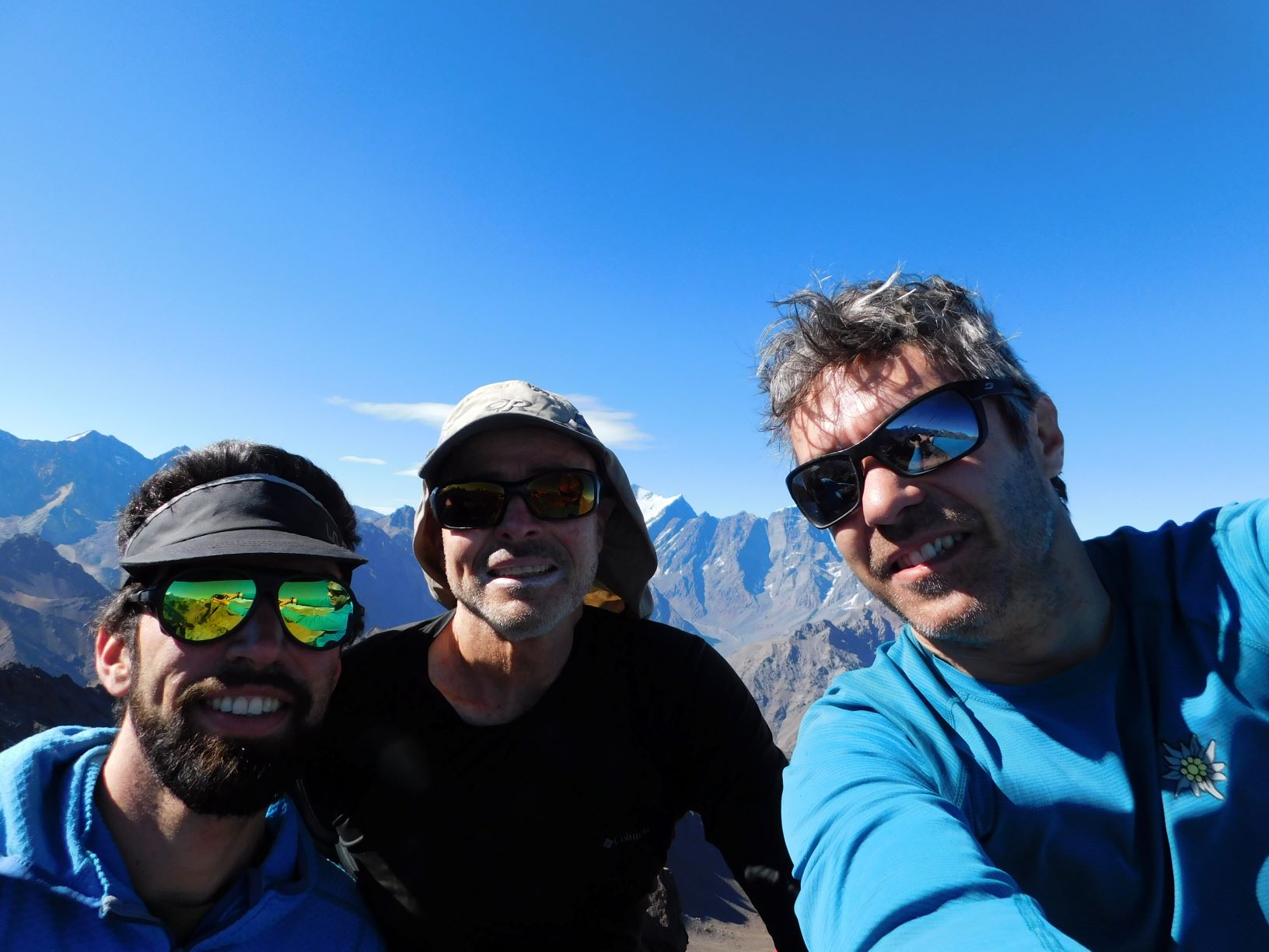 Al contrario de lo que nos había ocurrido en septiembre, en esta ocasión encontramos el cerro sin nada de nieve. Afortunadamente los acarreos hasta el filo cumbrero no eran tan pesados como se veían a la distancia y pudimos avanzar rápido. En el último tramo tuvimos que escalar un poco para alcanzar la cumbre. No encontramos nada en ella, por lo que podría ser un primer ascenso.