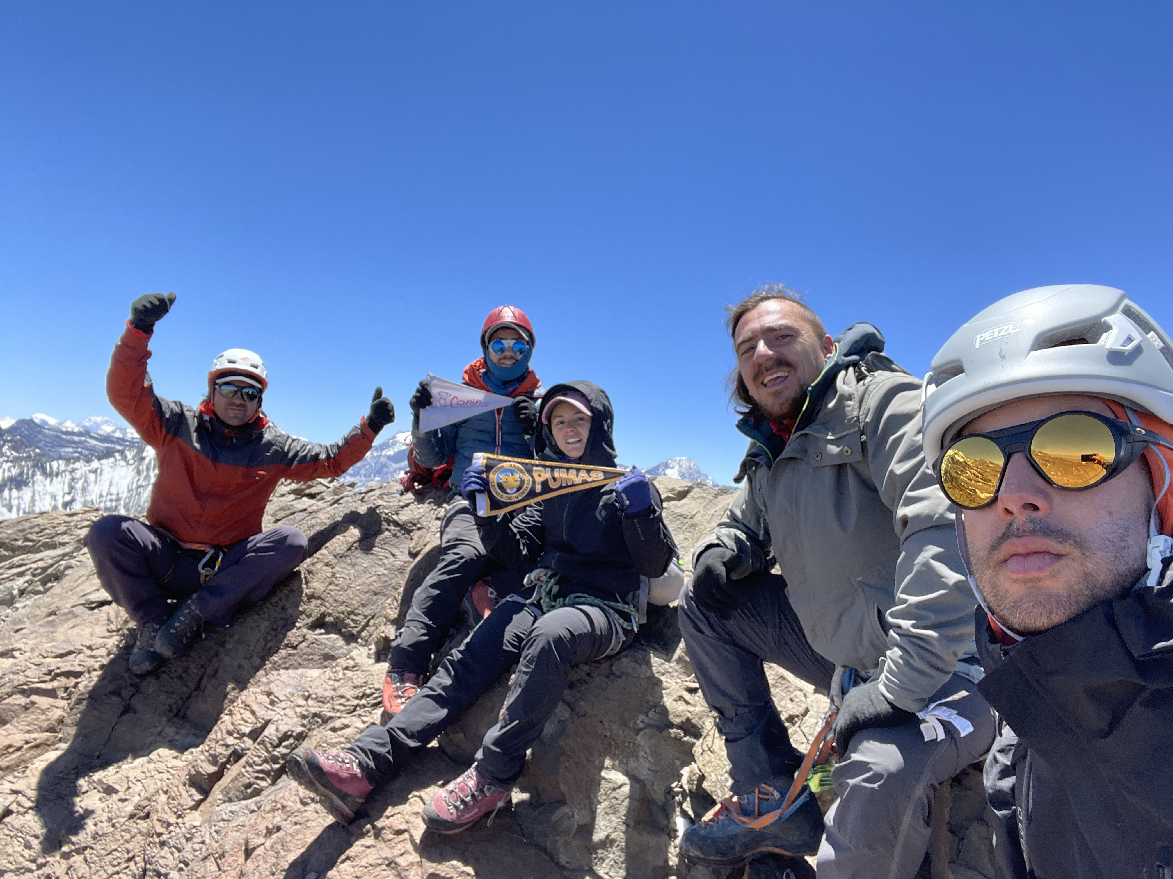 Foto de cumbre con buena vista al glaciar de los castaños un entretenido cerro para el teje y maneje de rapeles, rapel expedito justo de 30m aéreo, lo que le da un lindo atractivo.