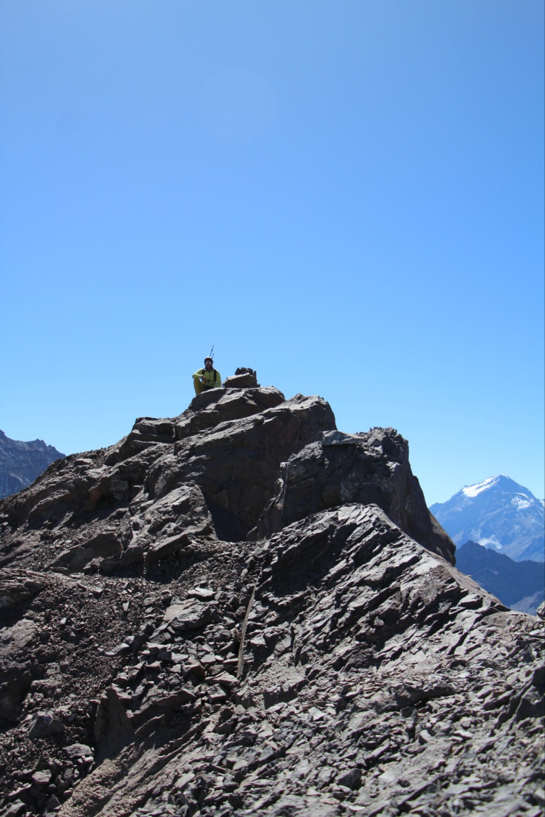 Hubo nevadas por la tarde los días domingo y lunes. Intentamos la cumbre el martes pero una capa de unos 5cm de nieve sobre la roca congelada hizo que algunos pasos fáciles adquirieran una mayor dificultad. A eso de las 12 del día la visibilidad era poca por las nubes y decidimos bajar.