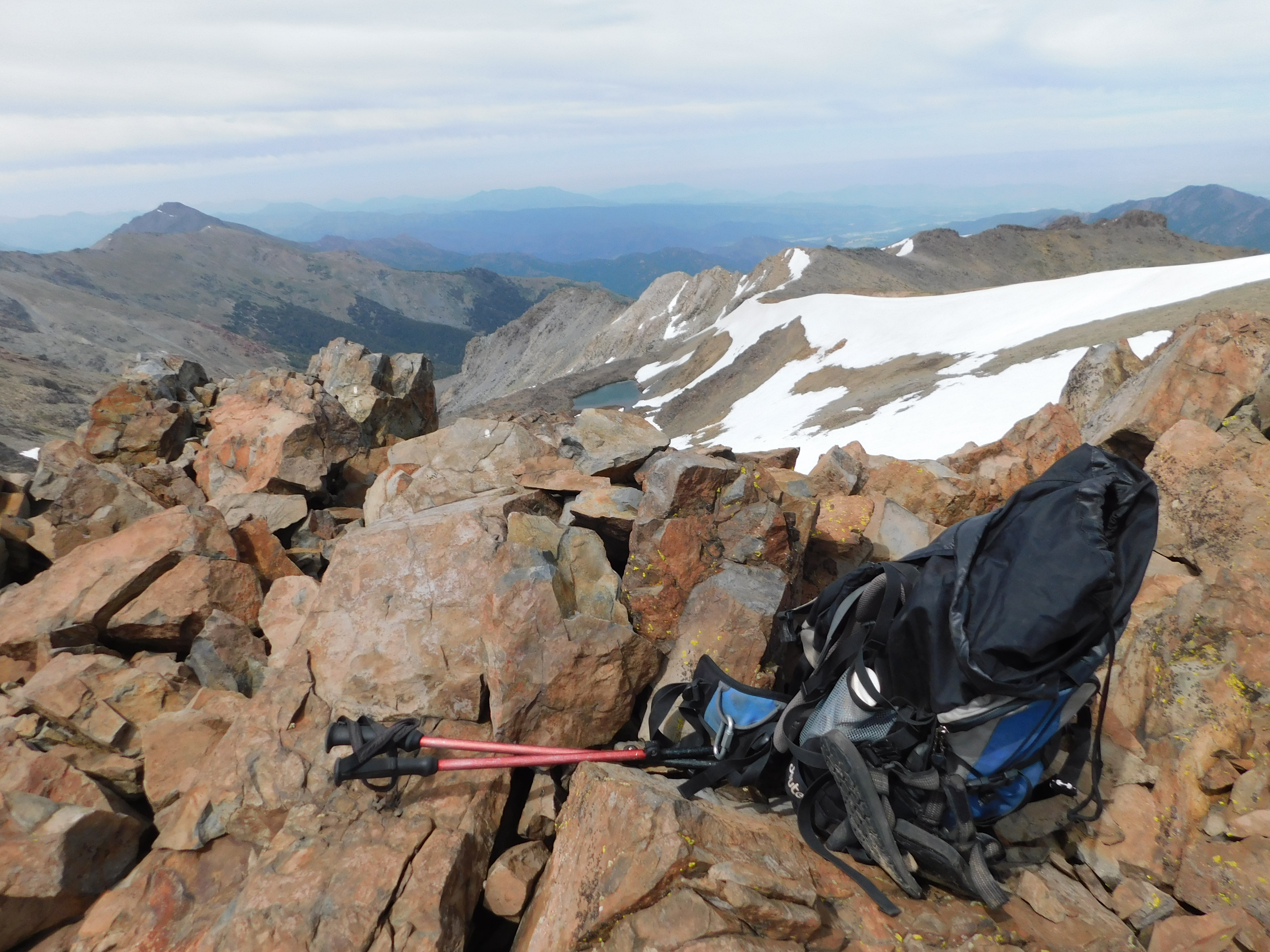 Aprovechando uno de los días más largos del año partí a dar una vuelta que pensé me podía tomar unas 10 horas. Salí del campamento Santa Andrea a los Corrales y de ahí quise seguir a la laguna Fría. No recordaba bien la ruta, así que tomé el filo que hay antes de la laguna y subí por ahí hacia el cerro Zapallo. Poco antes de llegar al portezuelo me desvié a una cumbre que todavía no sé cómo se llama y que queda entre el Zapallo y el Alto de la Plaza. Desde ahí volví al portezuelo y recorrí todas las cumbres del Zapallo. Sigo sin saber cuál es la más alta aunque en la que está más al norte hay un libro de cumbre que está sin anotaciones. Desde la cumbre Sur del Zapallo bajé hacia una laguna sin nombre y desde ahí a la laguna Fría donde paré a almorzar. Luego volví a mi campamento. En total necesité 7h y media para todo el recorrido.