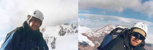 A la derecha está el Nico, al fondo un pedazo del San José y Marmolejo. A la izquierda estoy yo, con el Loma Larga atrás. Fueron 25 hrs de carpa a carpa...terminamos exhaustos. A la bajada, de noche, nos quedabamos dormidos si nos sentábamos para descansar. Si hasta soñé! El cerro es increíble, precioso. Las últimas ascensiones eran la mayoría de extranjeros y por la normal.