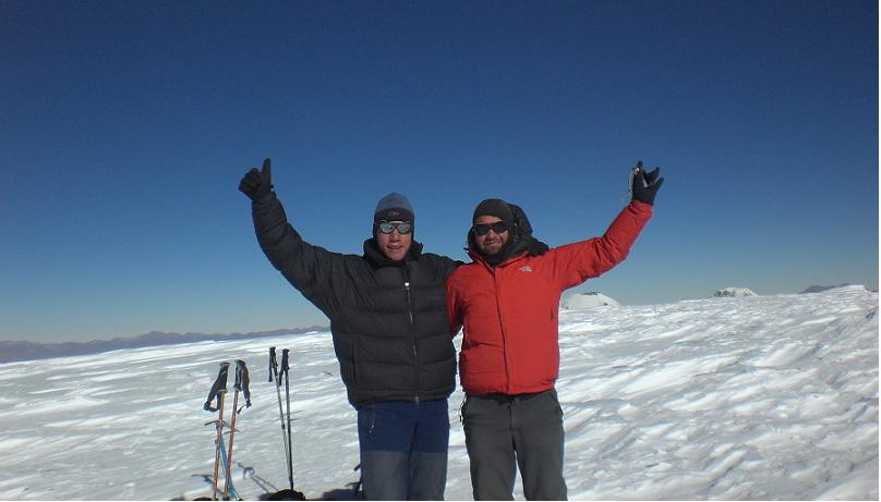 El ultimo de todo el viaje a Bolivia. Ya bien aclimatados atacamos desde el camino que lleva al CB. Nos fueron a dejar a las doce de la noche y llegamos a la cumbre a las 9:00am. Muy felices y con muchas cumbres dejamos este hermoso pais lleno de maravillas.