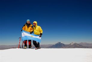 Día de cumbre ideal: salimos con noche de luna llena a las 00.30, sin viento y amanecer con un sol radiante. Llegamos a las 10.30, cansados pero felices!! Por ahí dice: "El Sajama es el Trono Sublime."