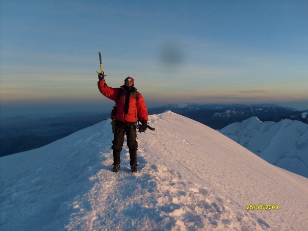 Iluminado por los dioses exelentes condiciones; pero un frio intenso casi casi la montaña me pide un dedo de regalo; pero gracias a dios me perdono. esta cumbre esta dedicada con toda la buena energia del mundo para mi hermano,amigo, cordada Dick Carrillo que pasa por un momento weviado. fuerza amigo recuperate y vuelve a las pistas.