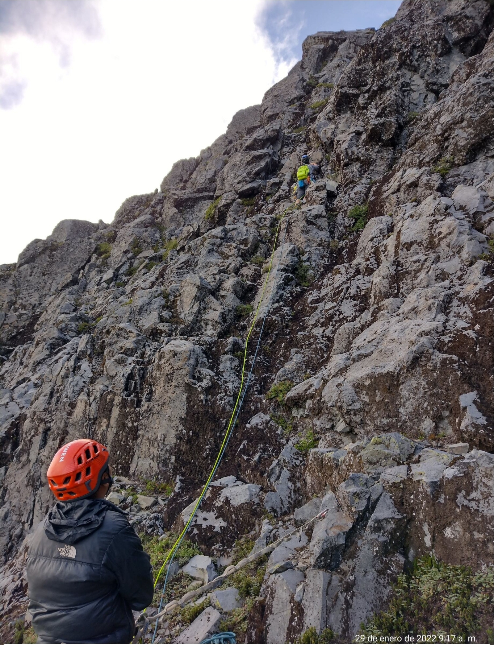 Cerro Sarnoso escalado en tradicional, consta de 3 largos y 2 travesias. Ocupado un juego de friends, stopers y anclajes flotantes con cordines. El descenso es de 3 rapeles