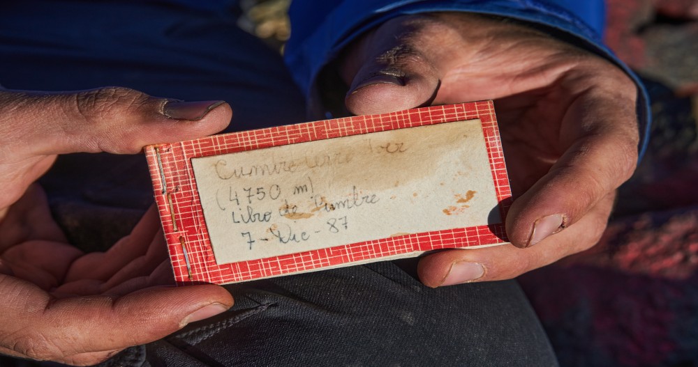 Libro "reciente" Desde el Barentín es corto, aproximadamente 1 hora con algunos destrepes muy sencillos. La vista a la mina y al Glaciar Olivares Beta es impresionante. Intentamos también la punta Sheirap o Sherpa, pero tiene una pasada muy expuesta (a menos que hayamos leído mal la pasada). Linda cumbre con excelente vista al Cerro Negro. Último ascenso era del 88.
