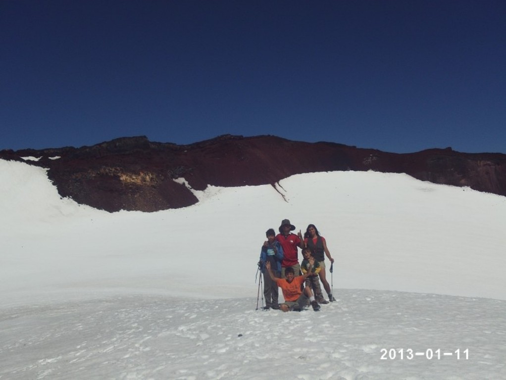 claramente es el crater, pero es la unica imagen done salemos todos subí con toda mi familia, un pequeño de 5 años fue fenomenal compartir con todos ellos.nuestra primera cumbre volcánica,un buen dia y una vista espectacular tanto como al sur y el norte al otro dia intentamos el tolhuaca pero fue muy complicado.