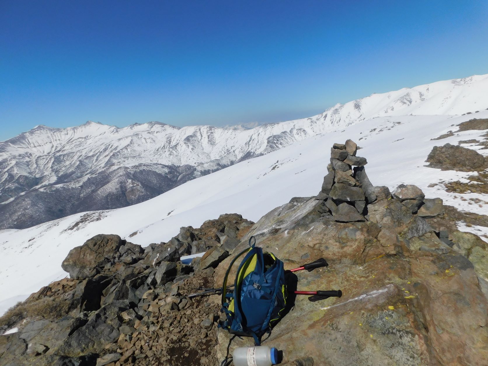 Llegué en 2h a esta cumbre. La vista estaba increíble con todo Alto Huemul nevado. Al bajar me topé con un grupo de cóndores tan grande que no pude contar cuántos eran. Probablemente eran más de 20.
