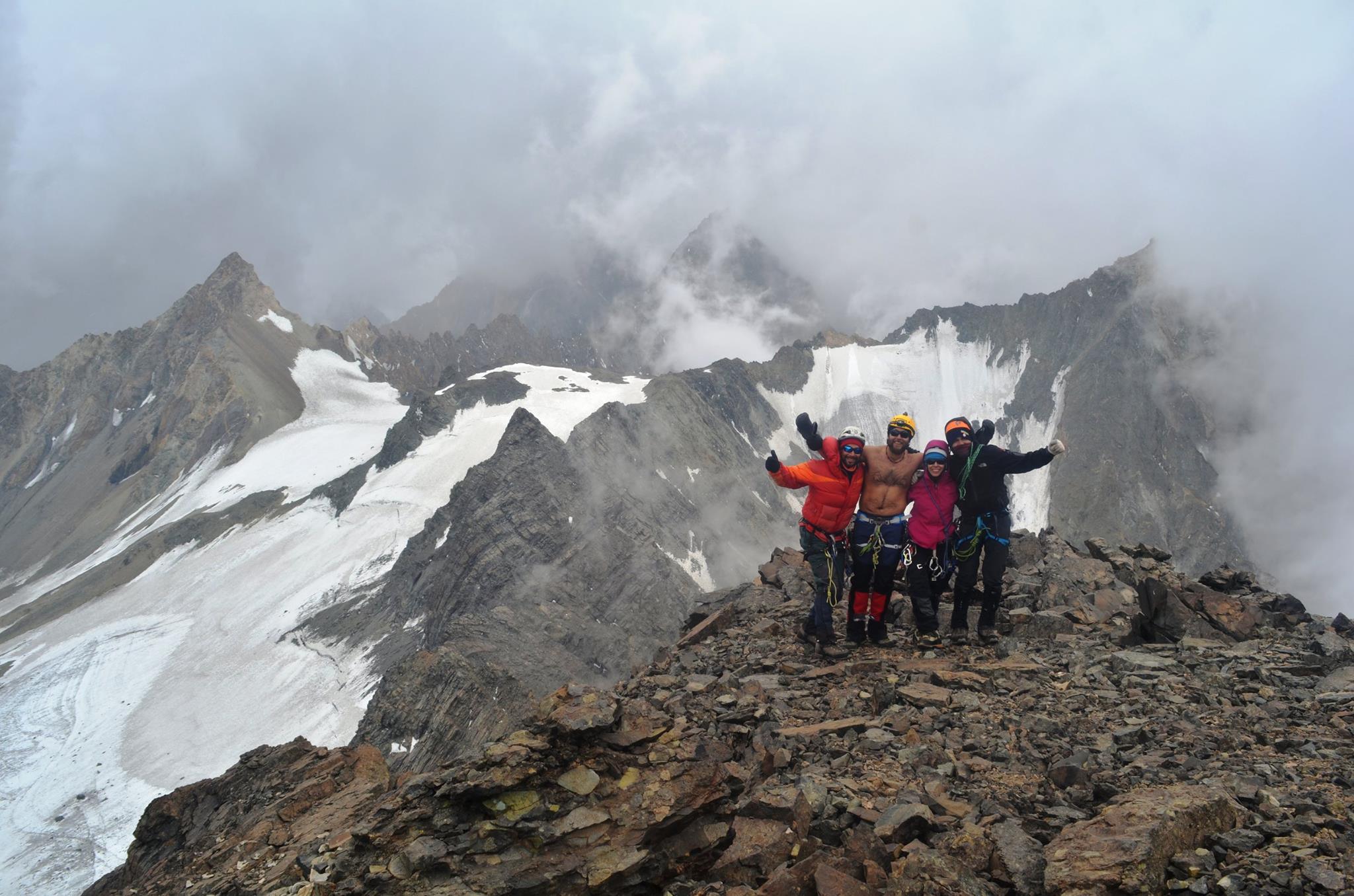 Día excelente para subir. Mañana fria, sin viento, despejado. El diedro tenía nieve y hielo en sus primeros metros. El glaciar con grietas cubiertas y penitentes en formación. Salimos aprox 4:15am desde un vivac en la morrena y a las 9am estábamos en la cumbre.