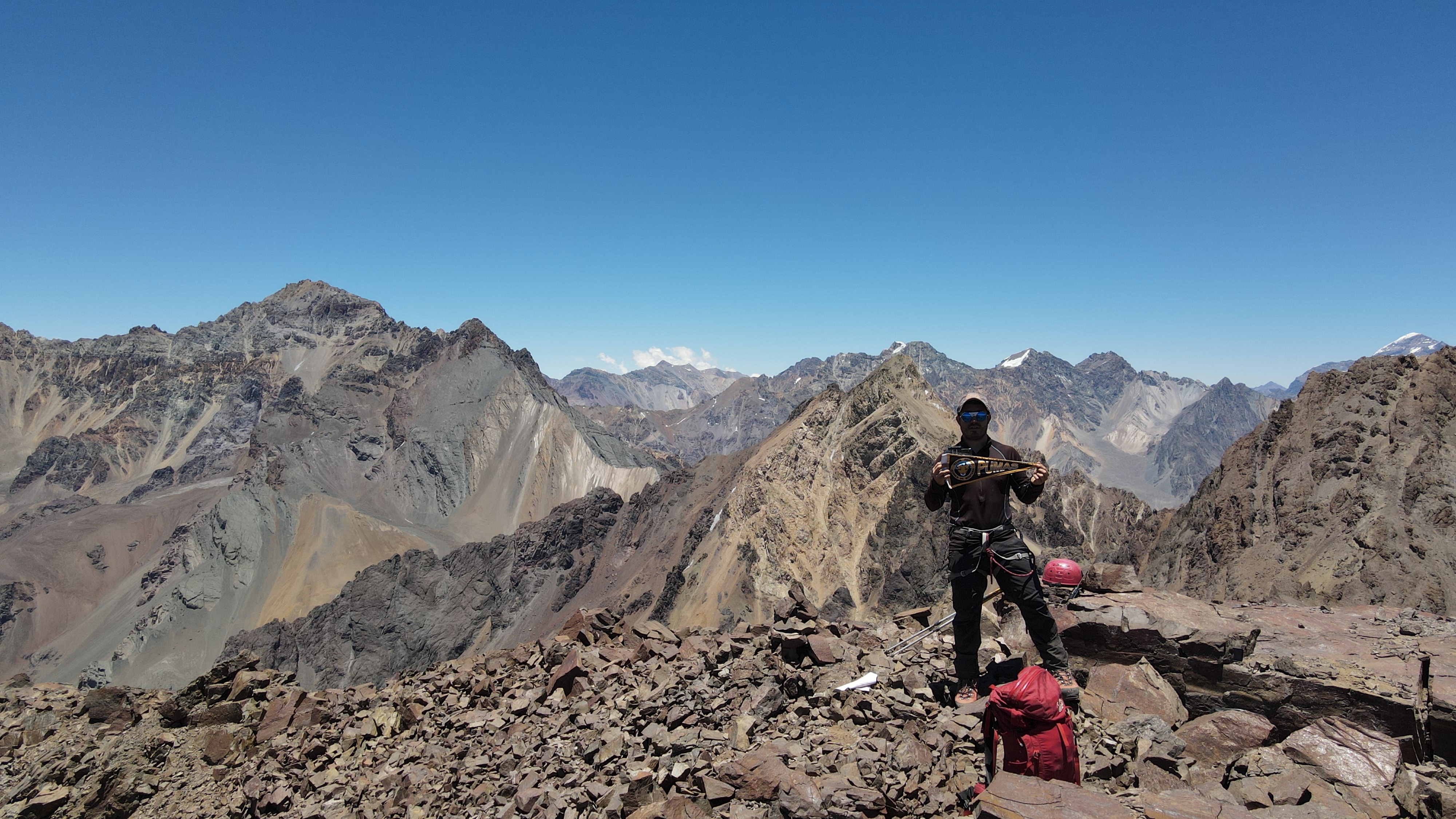 La vista en la cumbre es realmente impresionante y al mismo tiempo lamentable tras uno de los años mas secos de los ultimos tiempos. Hace tiempo que tenia ganas de indagar la historia detrás de este cerro, tan cercano y poco visitado, finalmente logramos encontrar una ruta de ascenso bastante tediosa sin nieve que llega hasta un portezuelo en el cual habian huellas de guanacos, posteriormente tomar el accidentado filo que requiere un rapel y una escalada al regreso y por lo menos 2 trepes delicados por roca descompuesta. Finalmenete en la cumbre un testimonio de hace 35 años que lejos de revelar su historia la hace aun más mistica. Por lo mismo y ante la falta de nombre del Cerro decido homenajear a Ulrich Lorber por haber impulsado el proyecto nomenclatura, con el objetivo de desentrañar historias guardadas como éstas. Un hombre querido a ambos lados de la cordillera, por lo que, este cerro fronterizo le hace honor.
