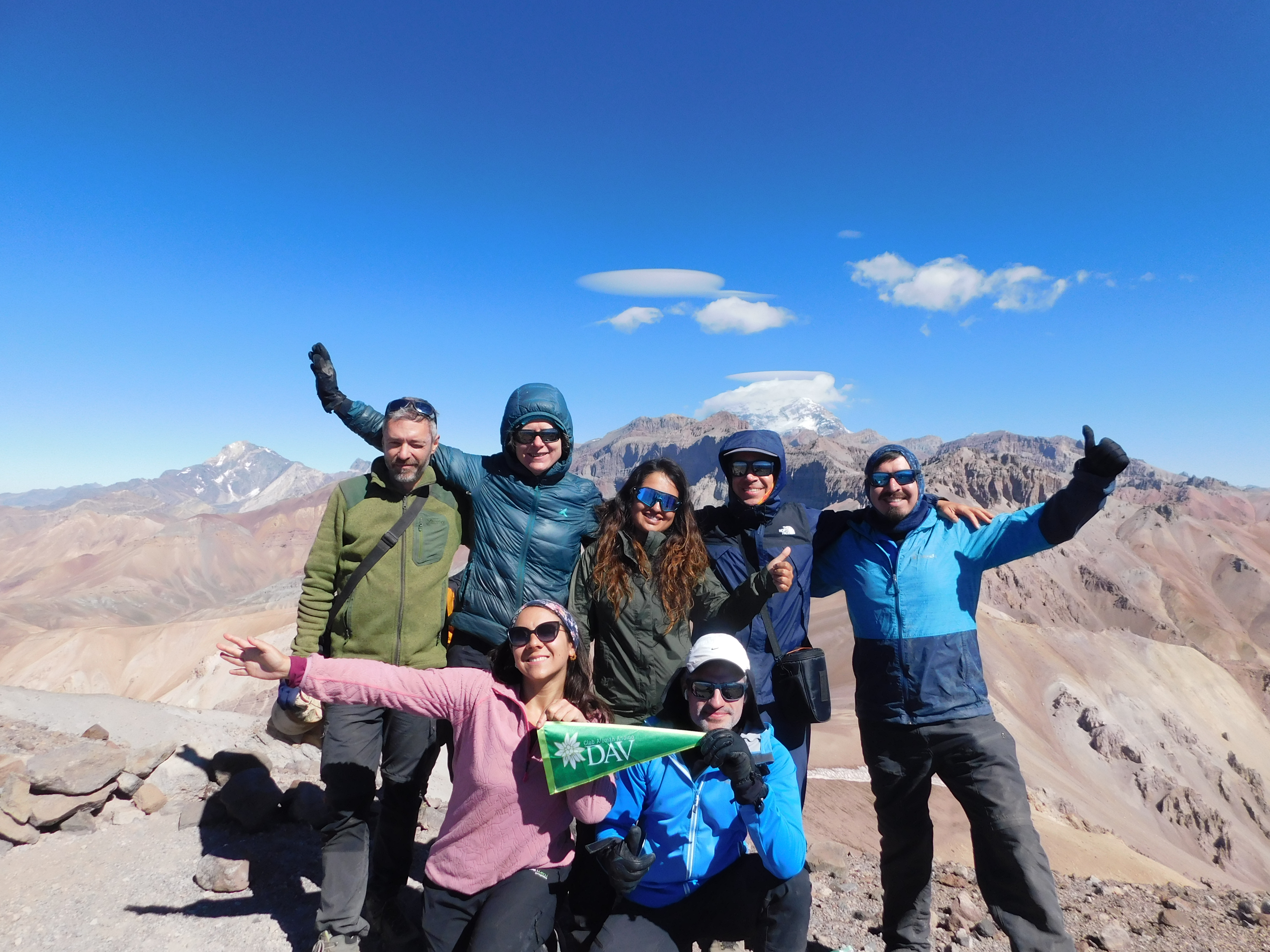 Poco más de 1h desde la cumbre del Leñas Sur. La verdadera cumbre es un conglomerado que se está desarmando. Poco antes de llegar la cumbre nos cruzamos con un guanaco.