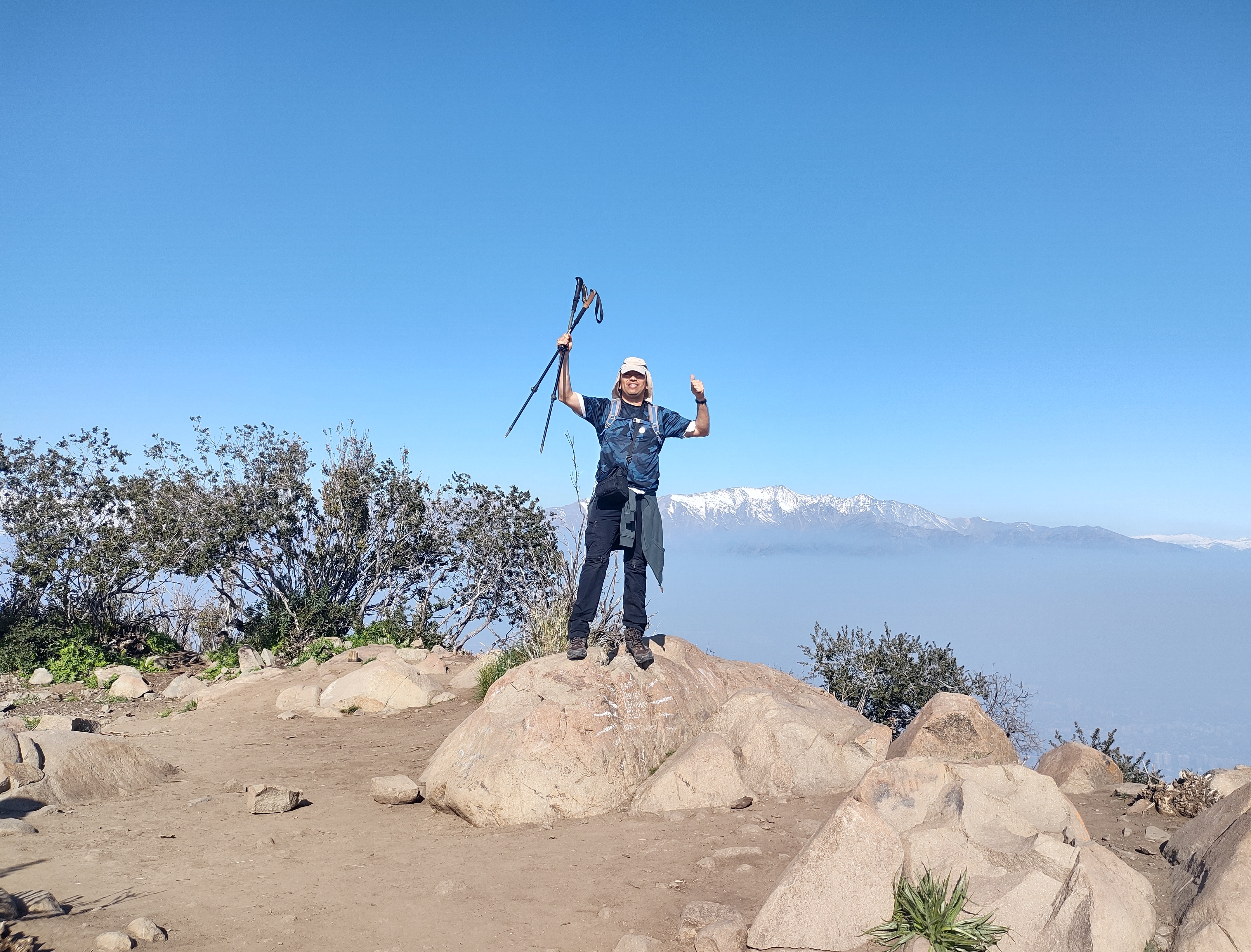 Ascenso parte de una travesía que abarcó los Cº Lo Curro-Manquehuito-Manquehue-Carbón. Muy buen trekking, pero agotador, sobre todo el ascenso al Manquehue El ascenso y descenso al y desde el Manquehue por sus vertientes este y oeste respectivamente, son con bastante pendiente y muy desgastante. Linda vista desde la cima, lástima que el smog no deje apreciar la ciudad en toda su extension.