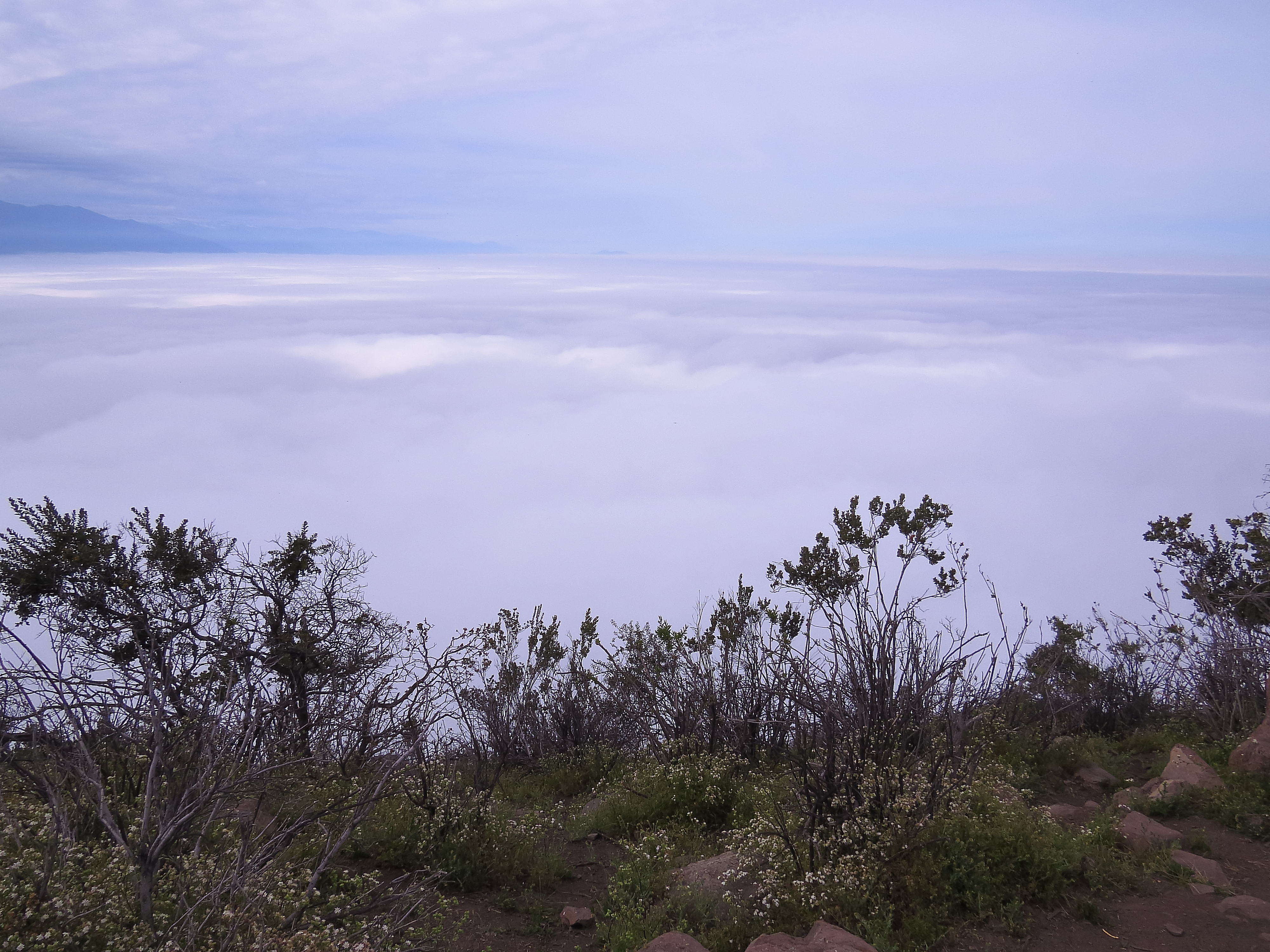Se puede apreciar la neblina que cubre la ciudad. Ruta realizada en solitario. Casi la totalidad de la ruta estuvo cubierta por una densa neblina (no se lo recomiendo a nadie). El ascenso y descenso se realizó sin problemas.