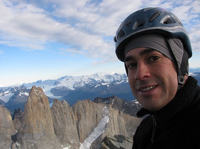 Vista de Las Torres desde la cumbre. Ascensión en solitario el día 29 de febrero del 2012, salida del campamento (base del canalón) a las 3 am de la mañana para llegar a la cumbre a las 8:55 am, con un día despejado y poco viento como pocos en Patagonia, impresionante vista de todas las cumbres alrededor, como Las Torres, Los Cuernos, Paine Grande y Fortaleza, la ascensión tiene 2 pasadas delicadas, “el paso de roca” donde hay una cuerda fija en mediano estado (es una cuerda estática de 11 mm aprox. y puesta a principios del 2010 si no me equivoco), con un anclaje que cuenta con 1 clavo, un nudo empotrado y un cordin alrededor de un rocon, esta fue usada como backup con un nudo autobloqueante solo como apoyo, no se recomienda usarla para rapelear, se usó el mismo método para el descenso (desescalar con nudo autobloquante de apoyo). La segunda pasada delicada fue después del Plateau, desde el Plateau se ve el filo que va por una roca de mas o menos 15 mts. de alto, esta se puede pasar por la izquierda (montarse al hielo), recto por la roca (una escalada de mediana dificultad pero sin protección, ¡!ojo hay una cuerda que parece fija pero no lo es, no esta anclada, mejor ni tomarla desde abajo… si alguien sube y la puede sacar desde arriba sería el ideal !!) y la tercera alternativa y más recomendable es ir por la derecha, hay unas pasadas que se pueden desescalar y seguir subiendo por la derecha del filo hasta encontrar alguna de las canaletas por donde montar el filo nuevamente para seguir hasta la cumbre. Esta sección fue usada en el descenso sin problemas, ese mismo día se llegó al campamento base a las 13:35 aprox. para llegar abajo a la hostería a las 17:30, luego de casi 15 horas sin parar….un día inolvidable!!