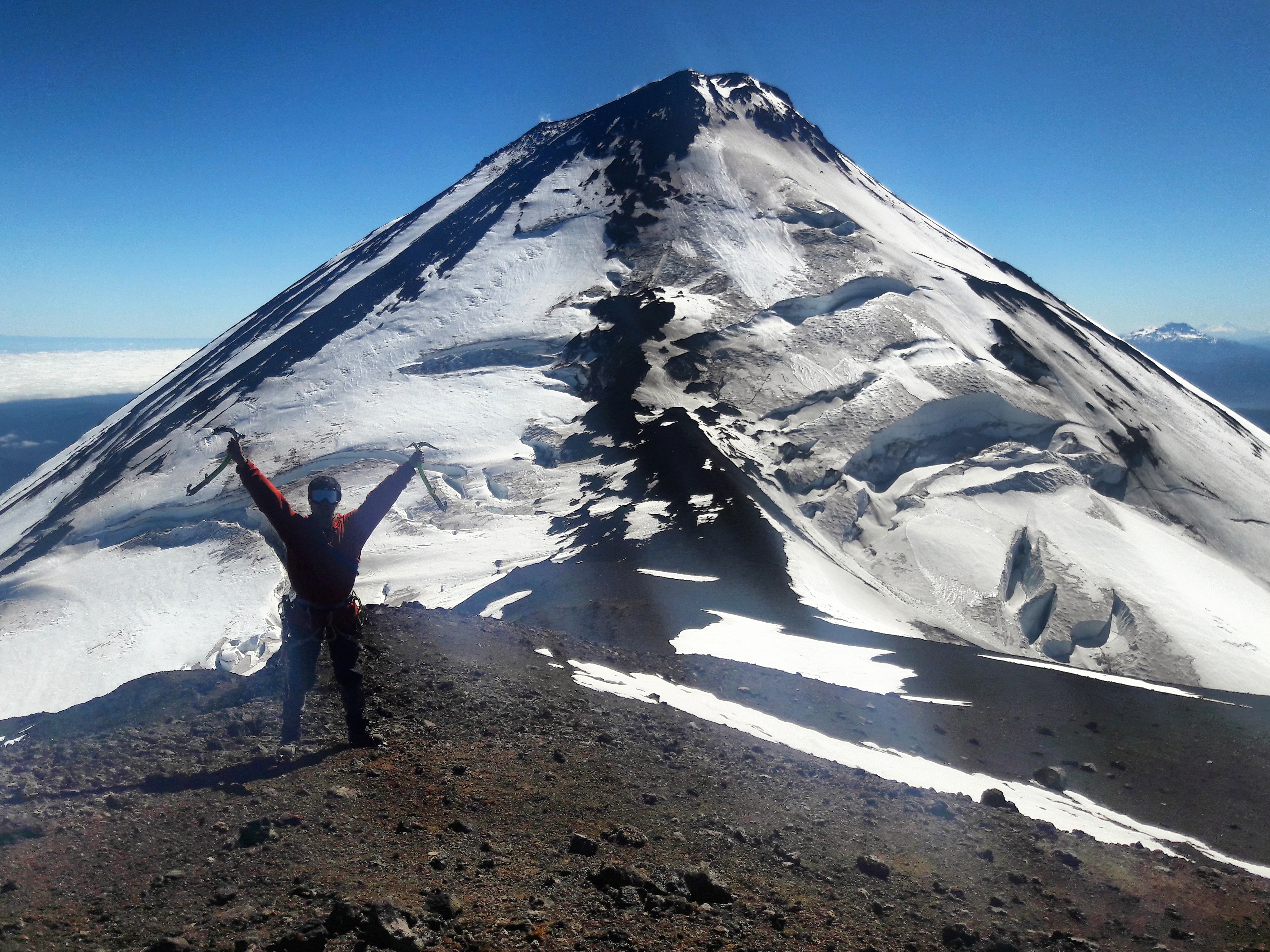 Comenzamos desde el centro de ski a las 4:30 am. Ascenso hasta el plateau sin nieve, casi llegando a este punto aparece la primera plancha de nieve muy dura, lo que obliga al uso de crampones que usamos hasta la cumbre. Nieve dura en el plateau que permitió el avance rápido hasta el cono, desde acá seguimos a menor ritmo por el desnivel pero constante y con buen agarre. En el comienzo de zona de fumarolas se apreciaron múltiples deshielos generando cuevas poco profundas que se pueden sortean con cuidado por puentes de nieve. Tras este punto y a 300 metros de la cumbre comienzan planchones de nieve y acarreos. La mayoría de los acarreos resultaron de muy difícil ascenso, recomendamos subir en la medida de lo posible por los planchones de nieve, muy cerca de la cumbre no queda opción más que avanzar por acarreos, fijarse bien porque hay pequeñas marcas de senderos zigzagueantes que alivian bastante el ascenso. Tras 6:30 hrs logramos hacer cumbre, día completo despejado y ascenso prácticamente sin viento( leve en la cumbre). Ese día logró cumbre otro montañista en solitario. Otra cordada de 2 que venía a muy buen ritmo llegó hasta la zona de cuevas, si bien no apreciamos lo que sucedió, suponemos que tuvieron alguna dificultad en este sector y luego descendieron sin problemas, recomendamos en la medida que indique si criterio algún sistema de anclaje como estaca de nieve y quizás alguna cuerda o cordin para salir de las cuevas sin dificultad. El descenso por los acarreos fue muy amigable, la nieve más blanda pero sin dificultad. Dejamos el contacto del único camping que encontramos con disponibilidad en esta en fecha en Cherquenco: +56992139807 Doña Irene y Don Cesar, muy amables y el camping muy lindo.