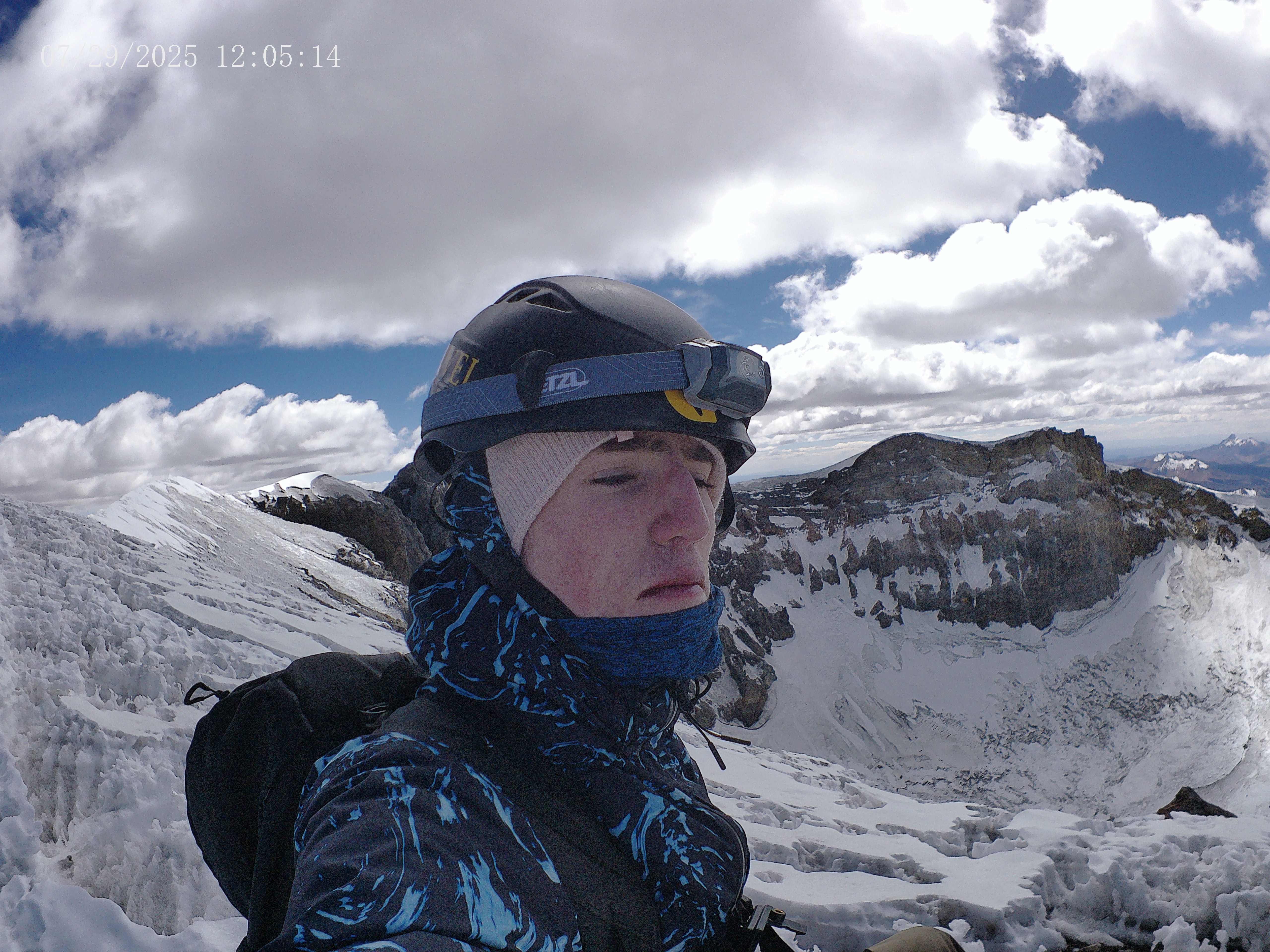 Cumbre fría, el hielo duro y sin casi penitentes, la cumbre totalmente sola, era el unico en ese momento