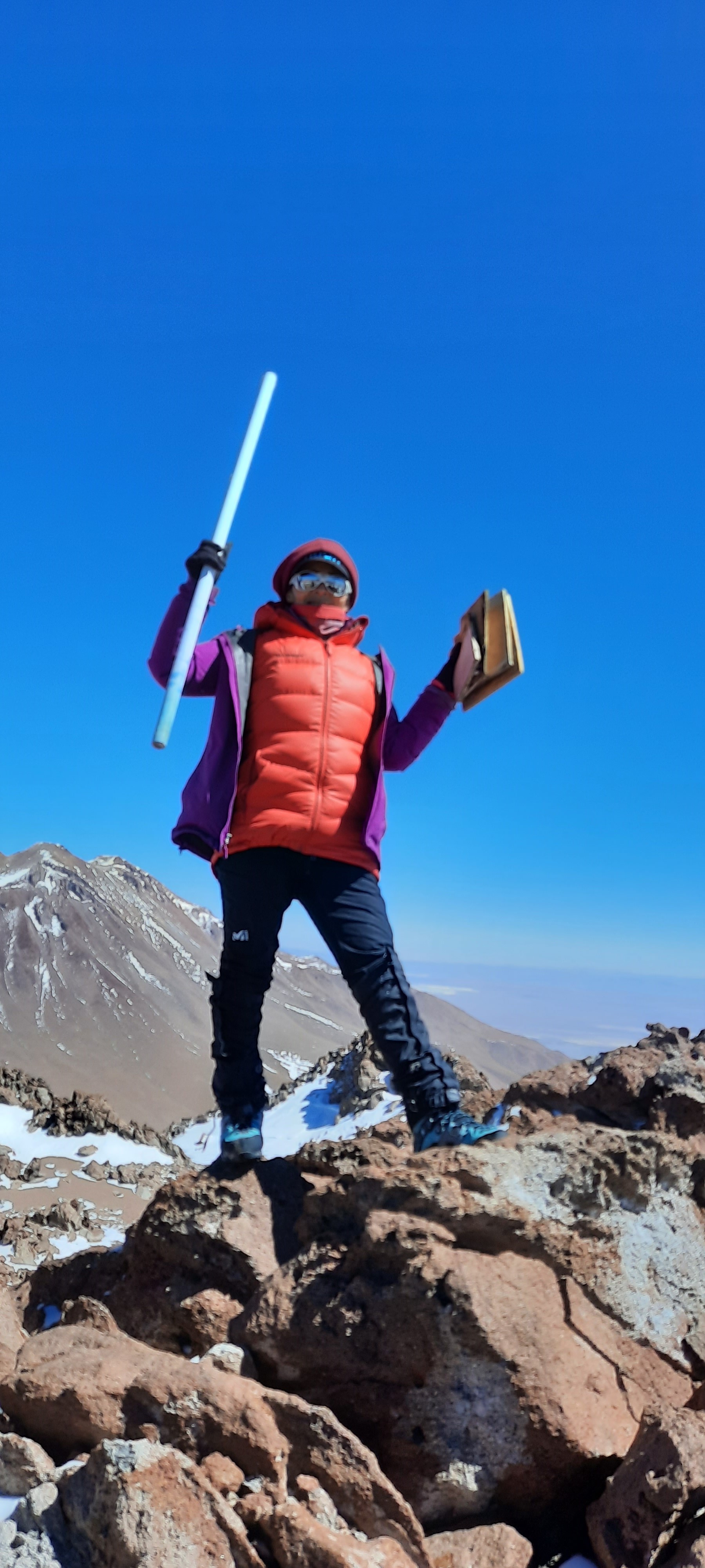 entramos por Talabre pagando 10 mil pesos por persona llegamos al campo base 4400 msnm el dia 14 de agosto tipo 3:00 pm , empezaron a caer algunas plumillas y durante la noche algo de lluvia y mas plumilla. al sgte dia del ataque de cumbre los sacos de dormir amanecieron con escarche , hervimos un poco de agua para los termos y partimos rumbo a la cumbre por un acarreo un poco agotador , llegamos a la base de la cumbre rodeado de varias puntas de cumbre subimos tres puntas buscando la cumbre correcta. hasta por fin encontramos un libro de cumbres.