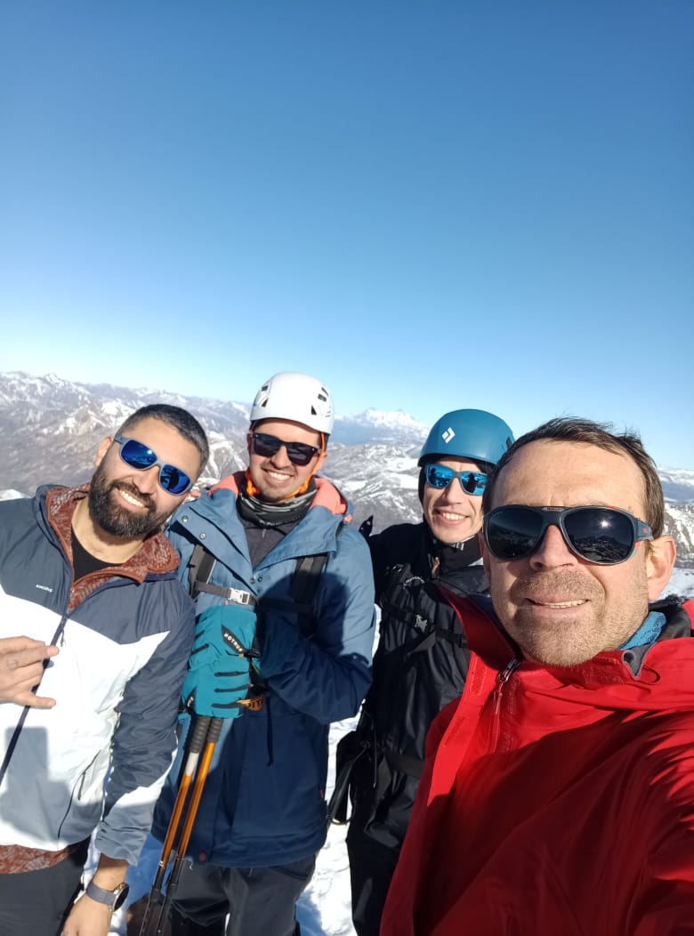 . Iniciamos a las 5:30 am desde el estacionamiento, la nieve se encontraba en buenas condiciones, lo que nos permitió avanzar rapidamente. A eso de las 8 ya estábamos en la cumbre. Luego seguimos hacia la cara sur del Volcán Chillán Viejo.