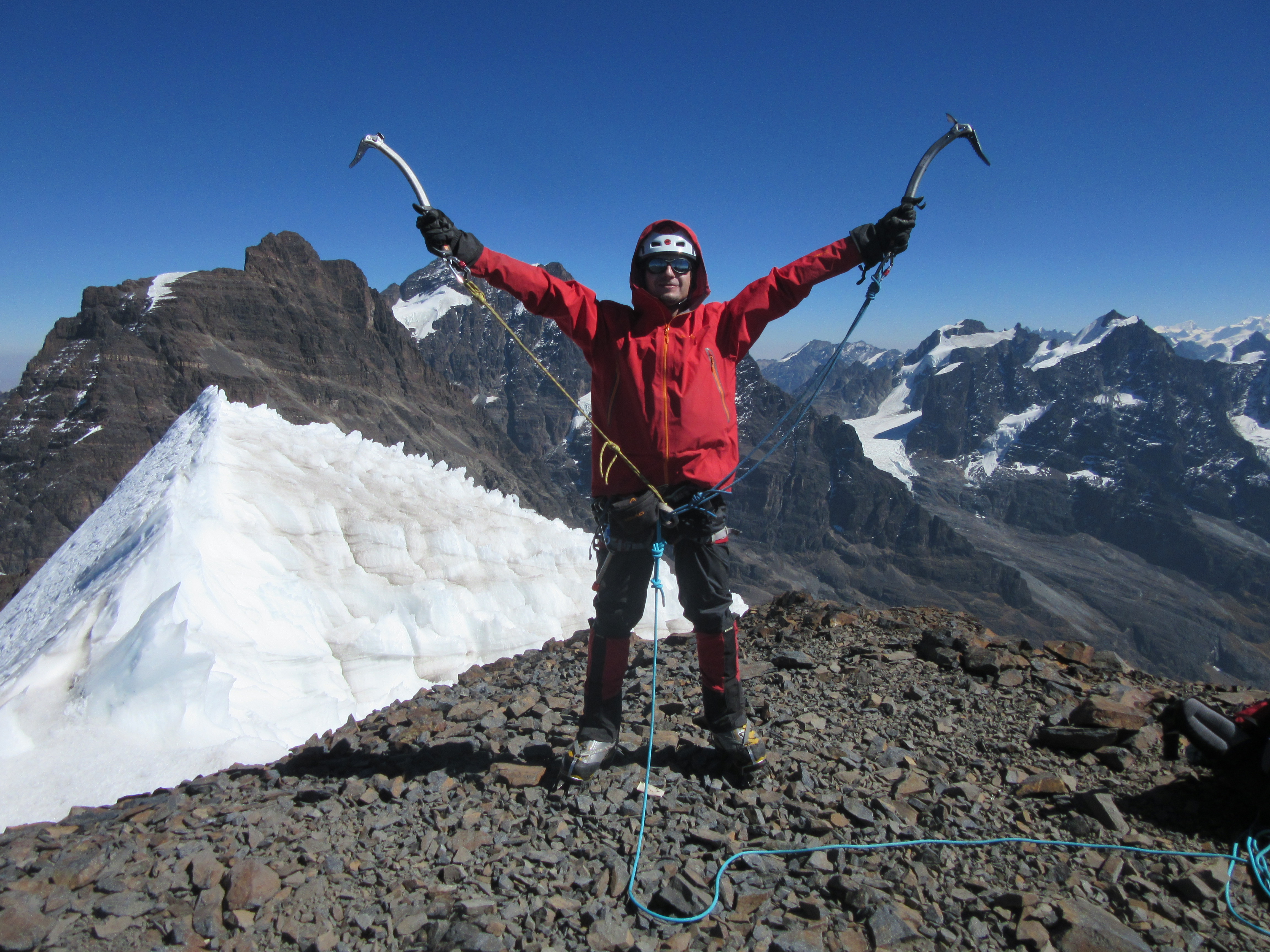 Lo primero que llamó la atención fue la falta de nieve, motivo por el cual la parte final de la arista cimera fue en rigor una escalada mixta. Utilizamos un par de tornillos para asegurar un tramo corto de hielo vidrio y cristal de 15 m y 50° app. Cumbre pensada y planificada con mucha antelación. Felicidad total.