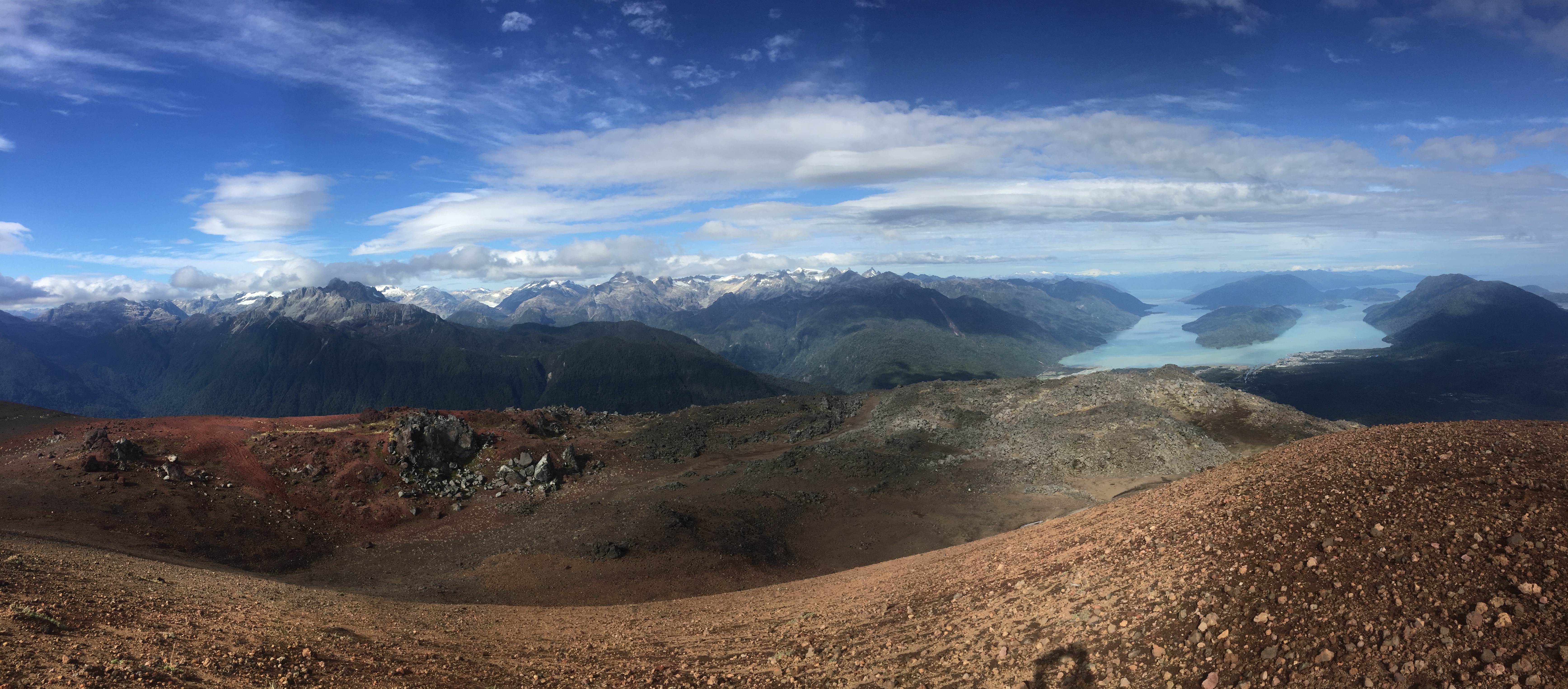 Vista desde la cumbre Primera parte sin mayor dificultad. Al llegar a las quilas y árboles caídos, la ruta se complica, ya que hay que abrir camino entre la vegetación y tener cuidado con los troncos y hoyos que se forman entre el suelo y la vegetación acumulada. Luego viene un escenario de lengas y finalmente roca, previo a la cumbre. Se ven hartos árboles de alerce, caminos madereros, y madera que se extrajo en el pasado.
