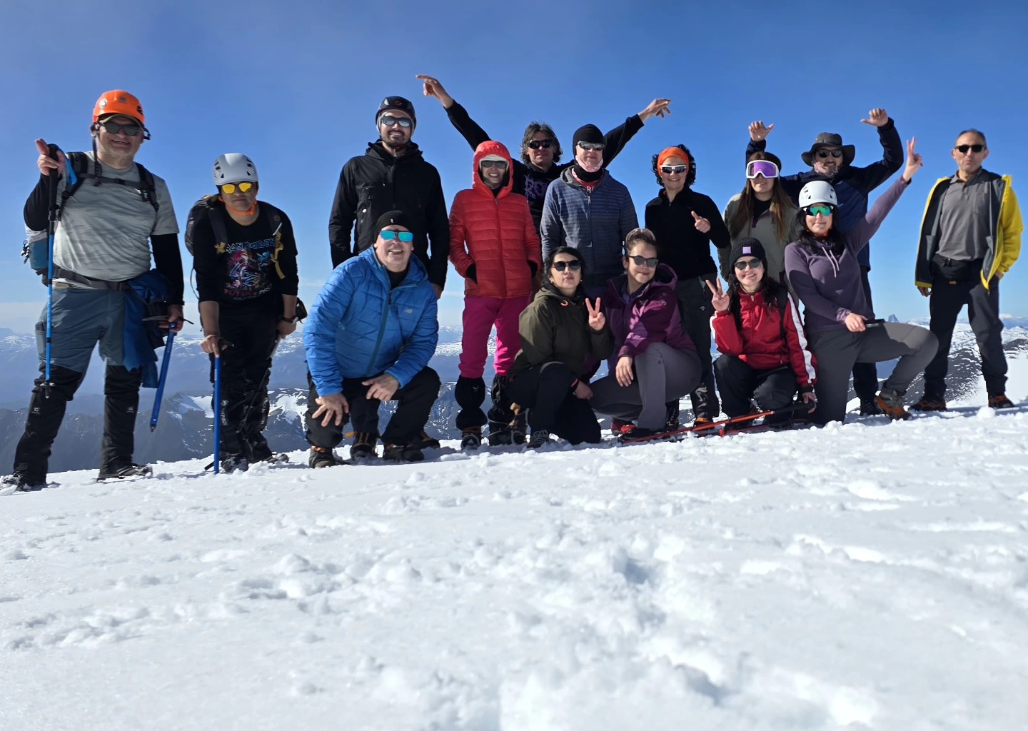 Cumbre es condiciones de meteo perfectas, nieve lo suficientemente dura para caminar sin enterrarse, no fue necesario el uso de crampones, pero siempre llevar!, fui con los amigos de trekking/hiking puerto varas, una gran cordada, algunos hicimos cumbre, 0 viento en la cumbre, estuve 2 horas admirando las vistas, en el cerro ademas habian muchas cordadas y grupos, app 50 personas en la ruta!