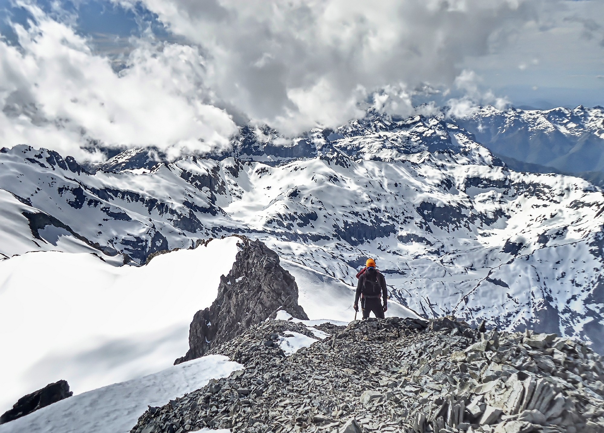 La ruta de aproximación está suficientemente marcada. Cuando la huella tiende a desaparecer hay que ir atentos a los monolitos. Sobre el día de cumbre, hay un paso expuesto a la salida del campamento. En la placa hay que tener precaución si está húmeda.