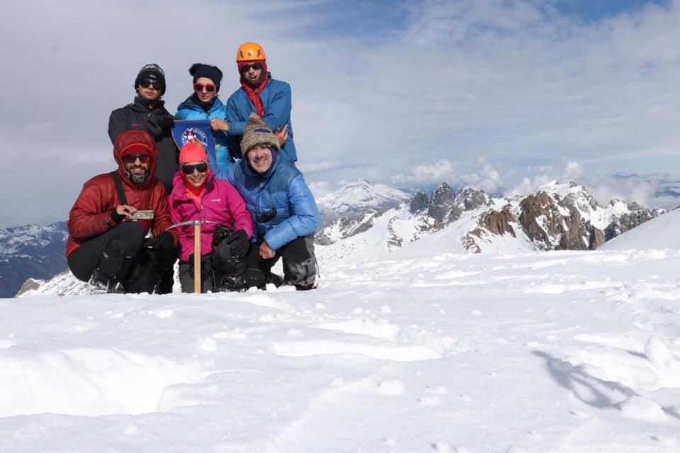 Los 6 en la cumbre, con el Longaví de fondo. Bellísimo cerro para ascenderlo en otoño, con una aproximación que transcurre por un bosque de marcada transición de flora del sur con la del norte, entre los que resaltan los peumos, radales, espinos, coloridos robles, teñidos de rojo por el avance del otoño, bellotos, rebosantes de penetrante verde, junto a los bellos troncos rojizos de los arrayanes, majestuosos cipreses de cordillera y las cristalinas aguas del Río Ancoa. El día de cumbre se debe tener bastante precaución con el paso expuesto que hay a poco andar desde el campamento, y estar atento al subir y bajar la placa rocosa, sobre todo si tiene secciones mojadas. Increíble el paisaje y las montañas circundantes que aparecen a medida que se suben las terrazas, con buena nieve en este caso hasta la Cumbre, la cual regala una vista maravillosa hacia donde se mire. De regreso en el campamento empezó a nevar y amanecimos con un bello manto blanco en el bosque alto, sobre la cascada (se puede acampar en él, no necesariamente en las piedras a orilla del estero). Realmente una montaña preciosa!