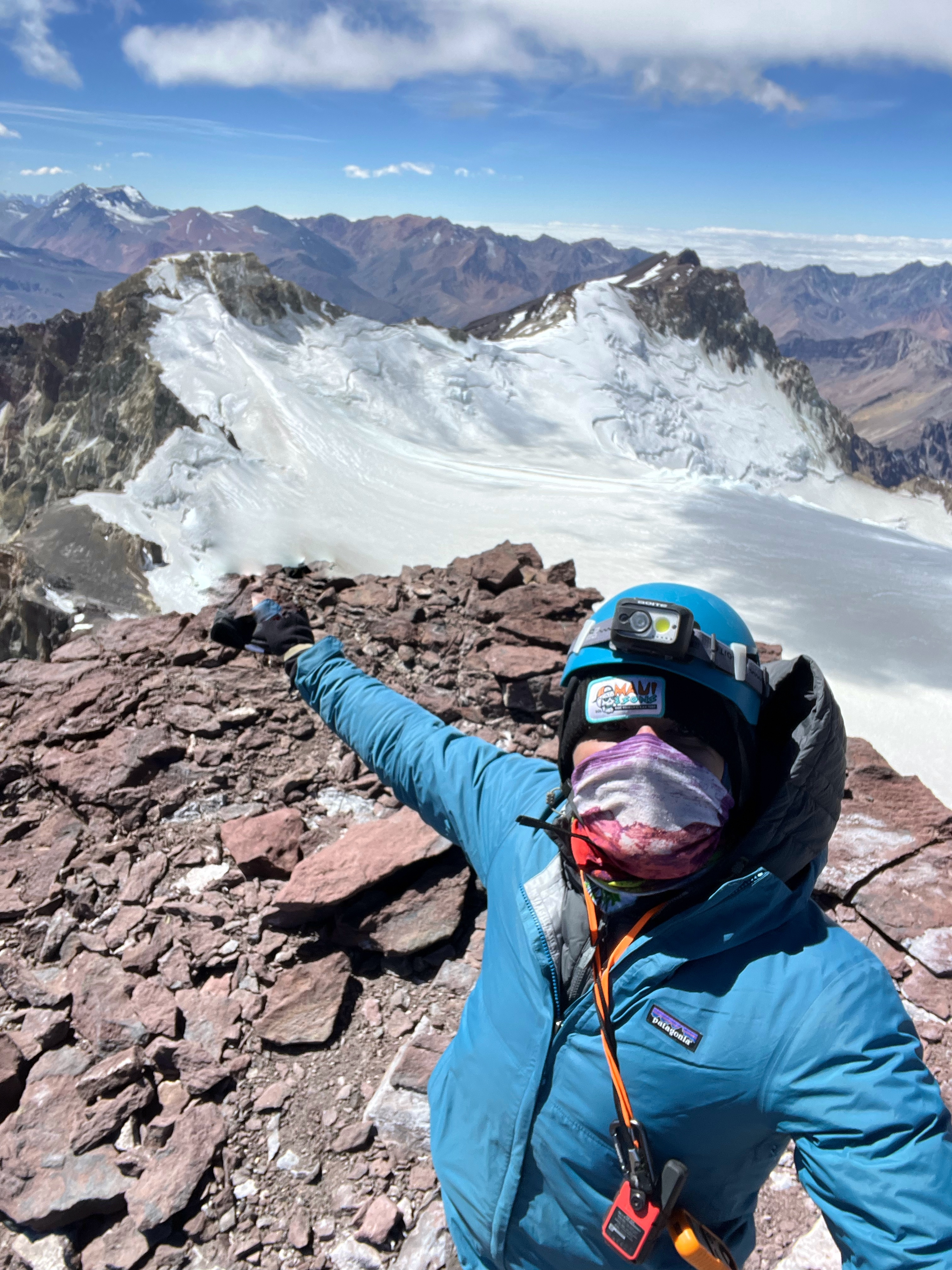 PUNTO ALCANZADO: CUMBRE 6108 MSNM FECHA EXPEDICIÓN: 07/12/2022 Hermosa ruta, jornadas largas de caminata saliendo desde cabrerio y llegando el primer día un poco más arriba de las lajas donde se encontró agua de deshielos. Segundo día hasta los 4800 msnm. Tercer día cruce del portezuelo y montando campamento en la base del cerro Marmolejo, hermosa ruta con un glaciar en esa época entero y con grietas claramente visibles. Cuarto día salimos a cumbre 1 am fuertes vientos casi ninguna opción de proteger del viento durante el ascenso. Quinto día salida desde la base de cerro en dirección a plantat jornada extremadamente agotadora, tomamos la opción debido al pronóstico de vientos subir por la morrena, en caso de haber condición favorable a la mejor opción es regresar por el gl