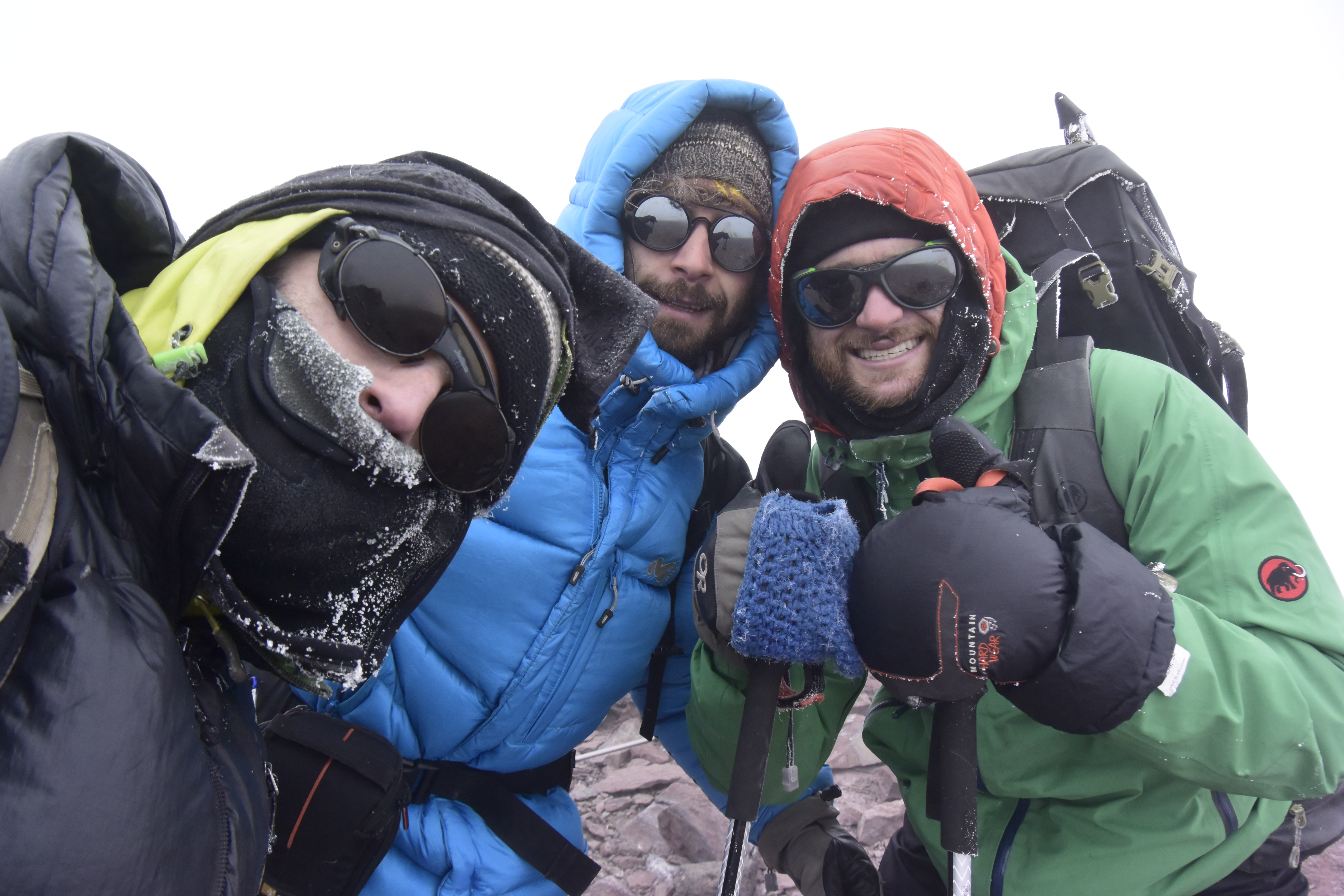 Al cuarto día, a pesar de los dichos de Juan, juntos a José, hacíamos cumbre en medio del viento y las nubes. Con cero visibilidad y los bigotes bien helados lograr la cima fue un arduo trabajo, el cual agradezco haber realizado junto a ambos. La sexta y última jornada la finalizamos cocinando unas reponedoras y ricas pizzas en Baños Morales.