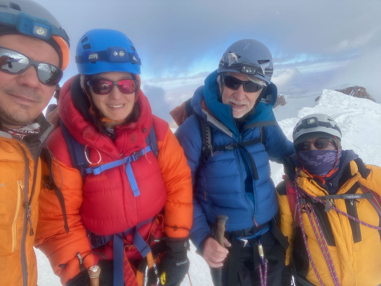 Nevó un poco durante las horas previas al ataque a cumbre y durante las primeras horas, lo que dejó un poco de nieve suelta que dificultaron algunas partes de la ruta. Luego se calmó el viento y ya cuando salió el sol fue espectacular. No había viento y ni una nube. Mi tiempo de ascenso fue de casi seis horas. Pero la cumbre tiene su recompensa: La vista es impresionante