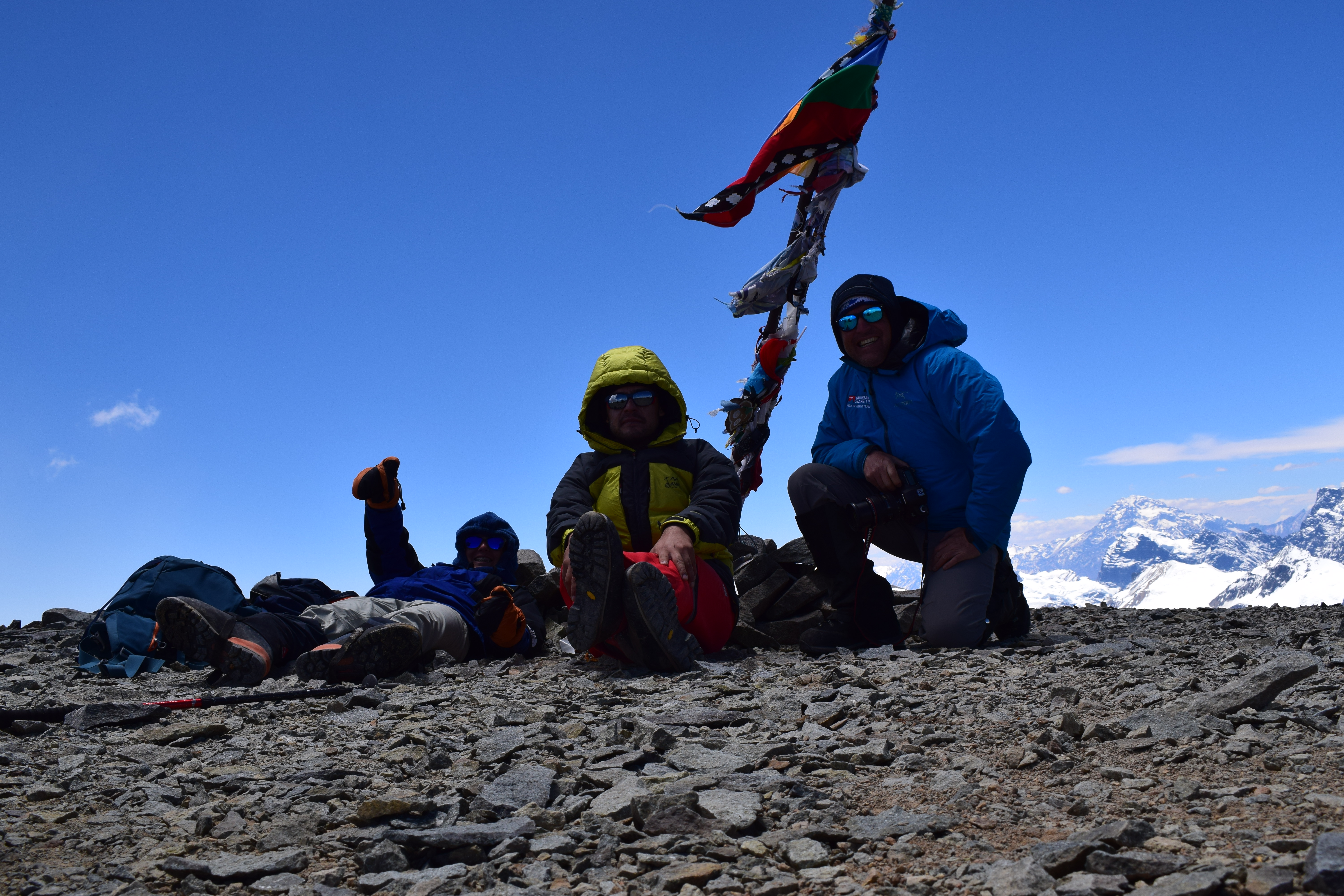 Con los amigos de Cumbre Victoria y Joaquín Oyarzún. Ruta en buen estado, hielo óptimo para crampones. Realicé la ruta casi en solitario, pero cercano a los 4.800 msnm me uní a dos amigos para subir a través del Glaciar tomado desde un punto inferior, desplazándonos hacia la derecha de la Pirca.