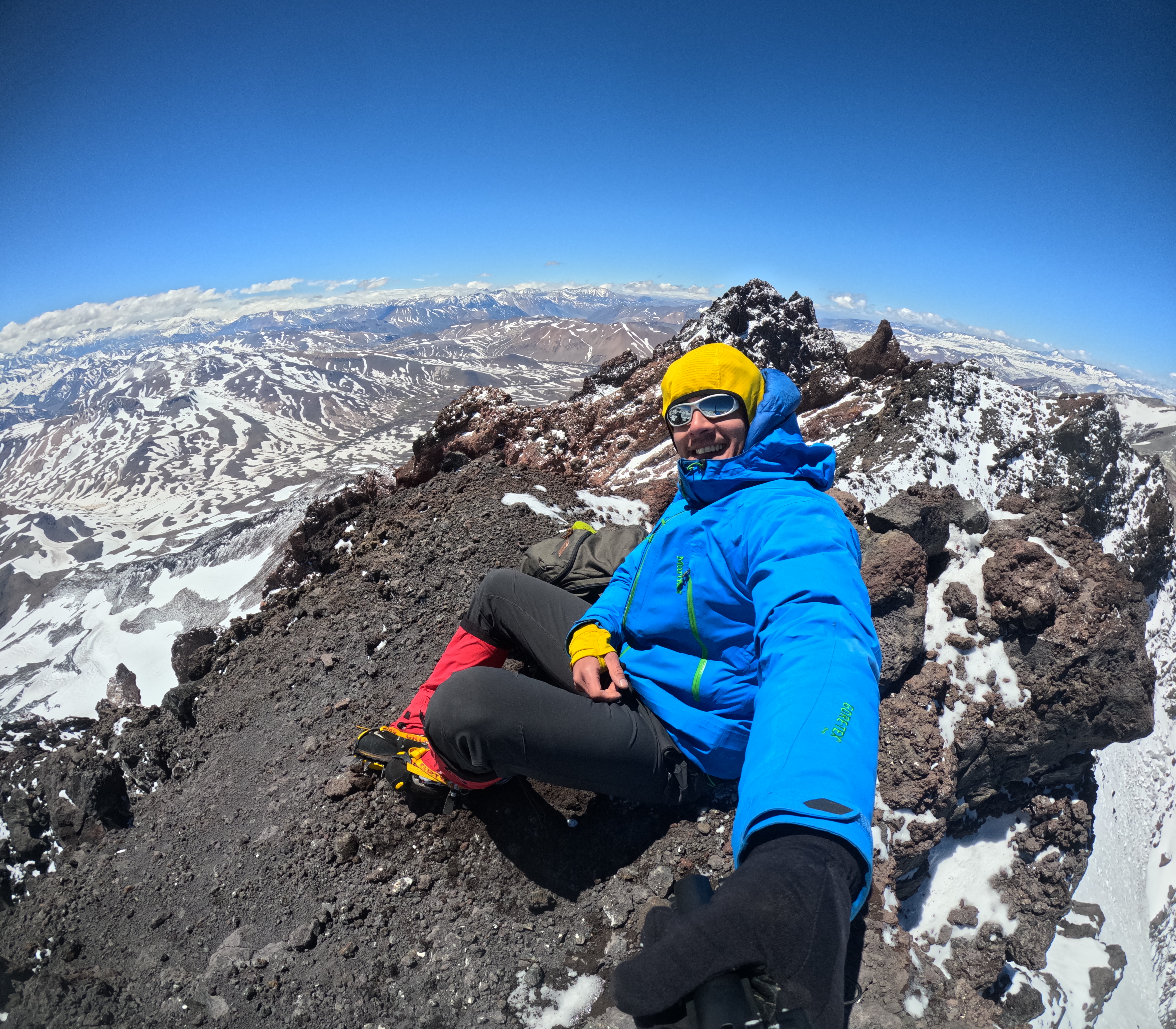 Hicimos la ruta junto a mi hijo Vicente de 15 años, de forma pausada y en dos días. Salimos desde la Laguna Teno hasta un refugio de pircas junto a una gran roca que protege bien del viento (3000 msnm) en 4 horas. Al día siguiente, salimos a las 6 de la mañana, haciendo cumbre antes del mediodía. Nos tocó un día soleado y tranquilo (con algunas ráfagas de viento esporádicas). Retornamos sin novedad. Excelente vista hacia el complejo descabezado en la lejanía y cráteres entre cumbres con el Peteroa.