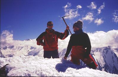Atrás se ve el gigante Nevado de los Piuquenes Hicimos campamento entre el Cuerno Blanco y el Bello (4800), es mejor acampar más abajo aunque se alargue un poco la jornada de cumbre. Muchas grietas en años secos