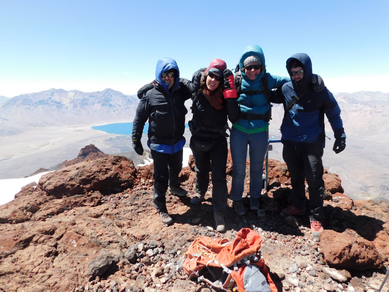 Después de superar todas las dificultades para conseguir los permisos logramos partir al volcán en un grupo de 10. El primer día lo dedicamos a buscar un buen lugar de campamento. Costaba mucho encontrar un lugar con agua más o menos limpia, así que acampamos junto a una laguna a unos 3800m a los pies de un glaciar. El segundo día lo dedicamos a aclimatar y aprovechamos de subir a la cumbre 3996, todavía sin nombre. Para nuestra sorpresa encontramos un pedazo de piolet muy antiguo en esta cumbre. Es extraño, pero parece que llevaba mucho tiempo sin ascenderse. El tercer día salimos a la cumbre y el viento nos acompañó durante todo el trayecto. Debido al viento llegamos separados a la cumbre en la que nos encontramos con muchos argentinos. Durante el descenso algunos miembros del grupo tuvieron problemas a la vista debido a la alta radiación, viento y altura por lo que llegamos bastante tarde al campamento donde el viento había volado 2 carpas, por suerte en dirección a las morrenas y no a la laguna. El cuarto día bajamos.