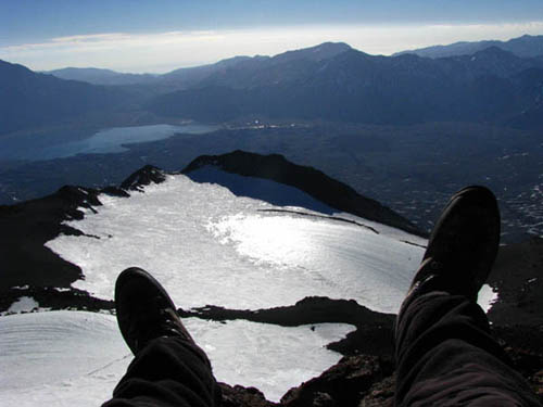La foto adjunta corresponde a la cima del volcán Maipo, tomada - con zoom - desde el camino de servicio del gasoducto que corre al Sur. La foto la saqué un 22-12-2007, estando parado justo en el límite internacional.