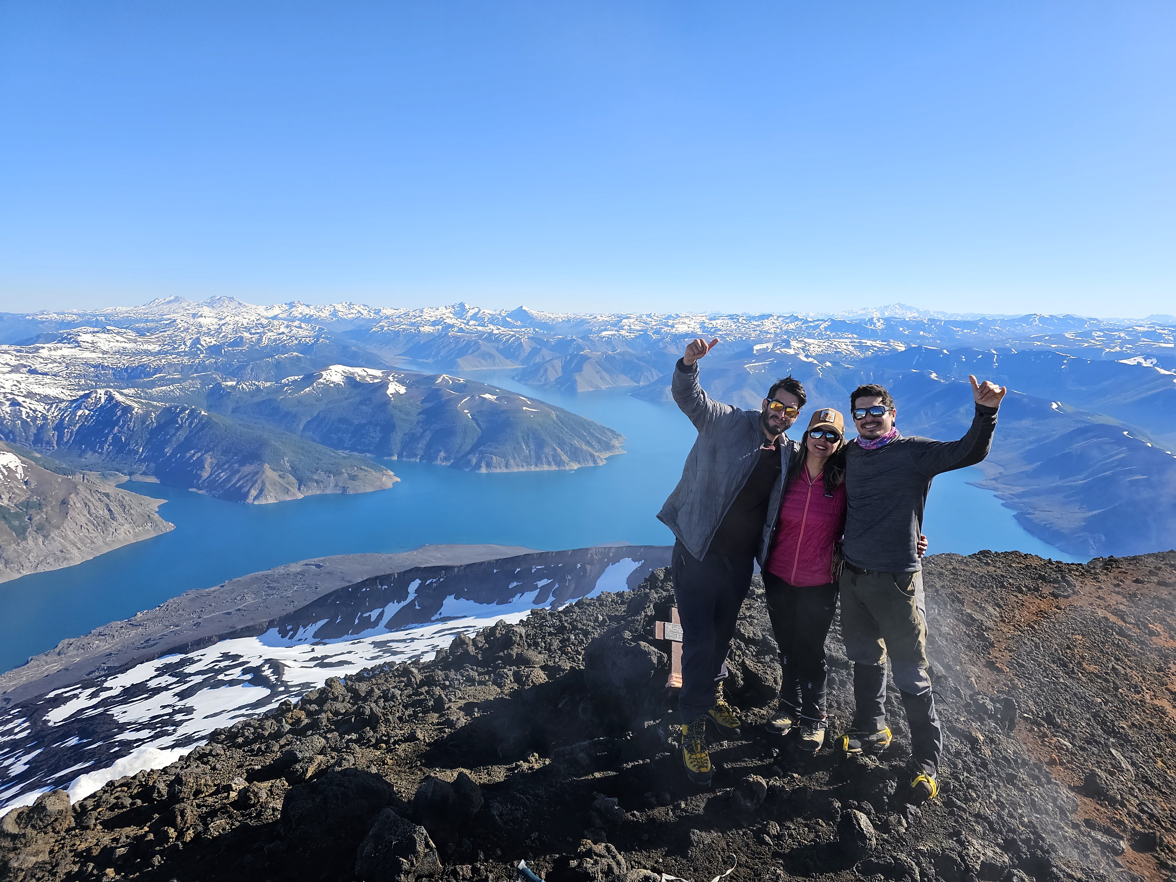 Un cerro que parece simple pero tiene lo suyo, nos tocó subir por una ruta bastante directa, con harta pendiente t en algunos tramos con hielo. Es necesario el uso de crampones, piolet y casco. De bajada hicimos la vuelta más larga pero fue más rápido, de subida nos tomó unas 6 horas desde los 1400 app (inicio del andarivel) y de bajada unas 2.5hrs. Toda la subida y bajada con vistas hermosas de la Cordillera y la laguna del laja, en la cumbre hay fumarolas y una vista privilegiada al Sierra Velluda, un imperdible de la Región