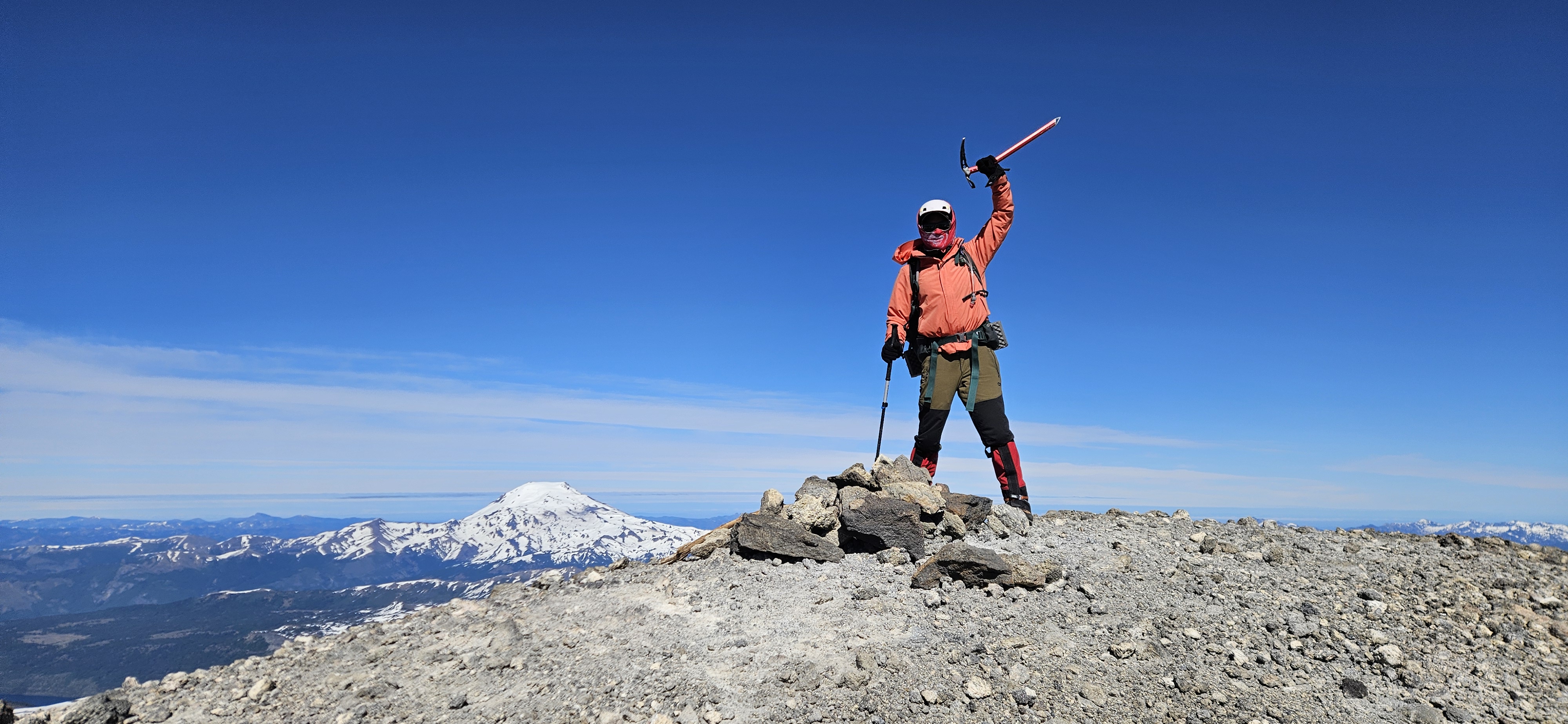 Cumbre del Volcán Copahue junto a miembros de la rama Pillan Tiempo de asenso 5 hrs hasta la cumbre, paso por quebrada rocosa para luego dar paso a un valle cerrado por laderas expuestas. Fumarolas principalmente de vapor de agua y cumbre nevada.