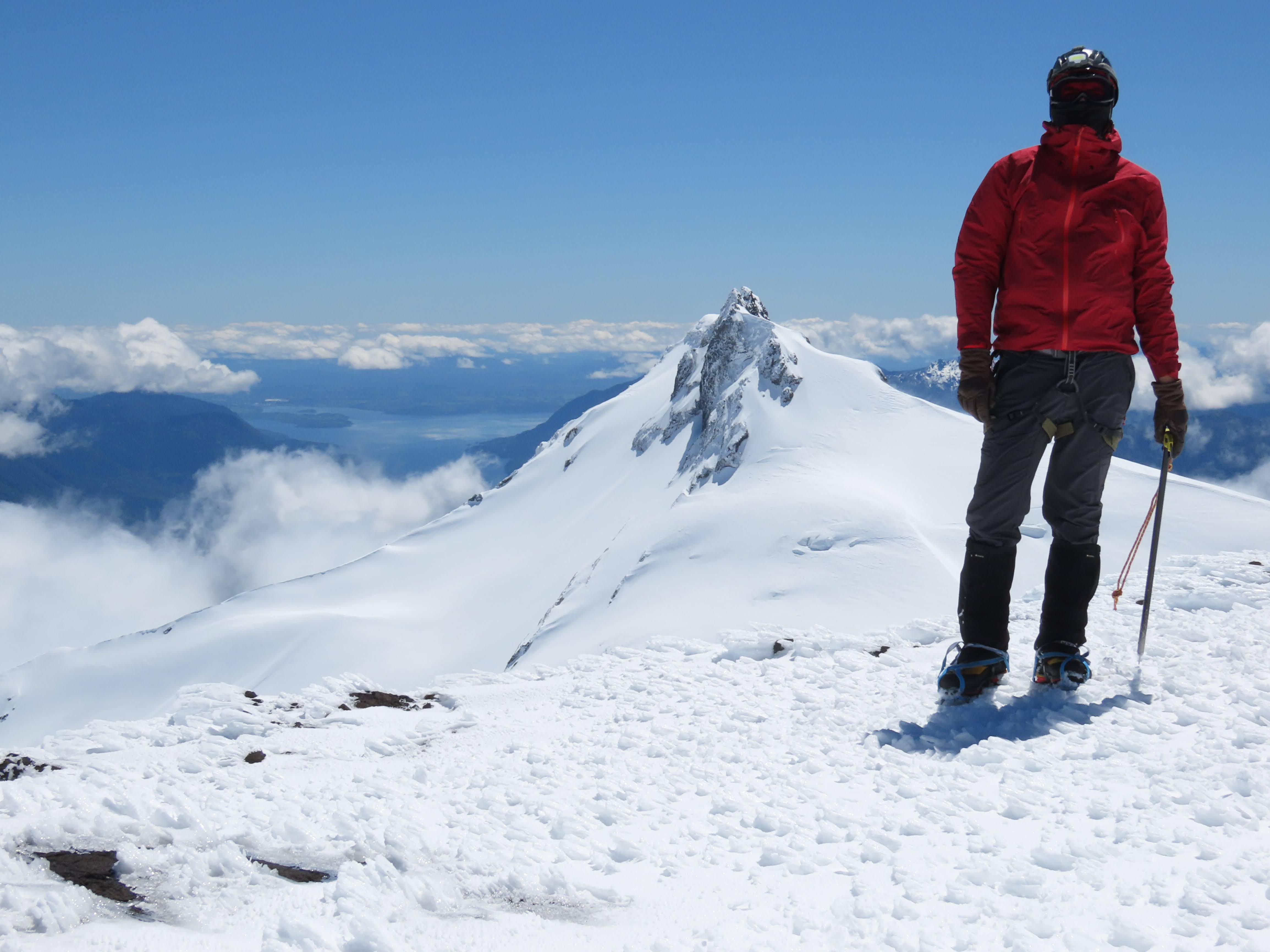 Luego de escalar al vecino Choshuenco, nos dirigimos hacia el Mocho,escalando por su cara oeste desde el plateau entre los 2 volcanes, llegando en 1 hra a la cumbre norte del Mocho para luego cruzar el cráter hacia la cumbre principal. Descenso por la normal hacia el refugio completando 15 hrs camp to camp.