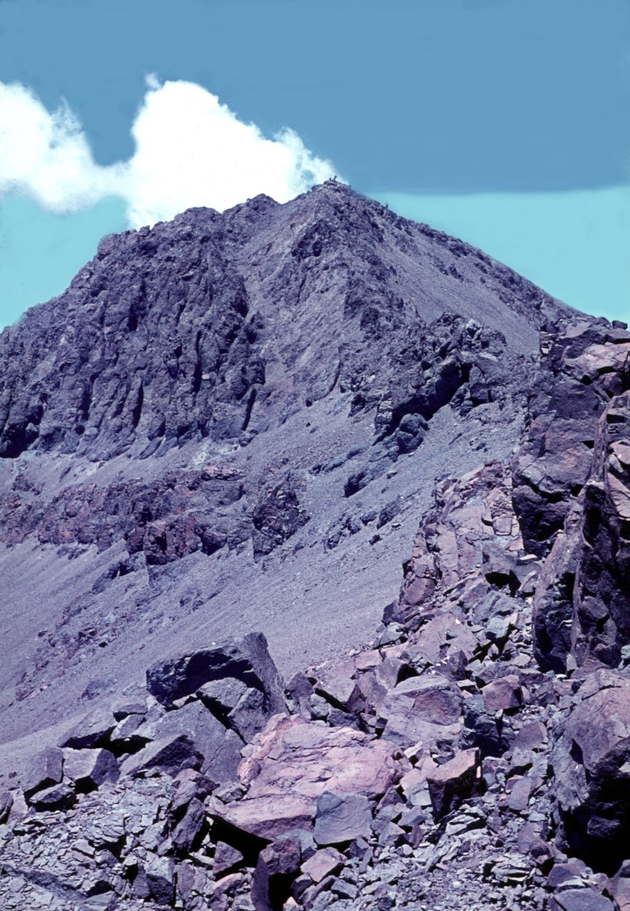 La ruta seguida partió del pueblito de Melocotón y siguiendo el curso de la quebrada de la Calchona ganamos altura el día 17 para acampar cerca de los 3 000 metros y seguir al día siguiente hasta la cumbre.