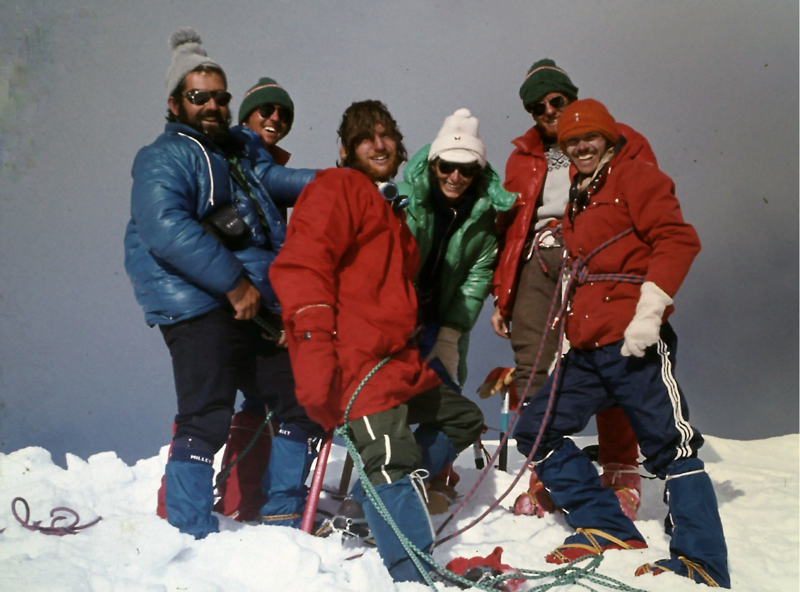 Parte del grupo (faltan dos) a las tres de la tarde en la punto mas elevado de las montañas de Vilcanota. Dos jornadas entre base y cumbre mas una jornada descenso. Campamento intermedio alrededor de los 6.000. Nieve muy profunda en la zona somital, tramos de roca sencillos en la primera parte y dos tramos de nieve-hielo bastante empinados, antes del campo uno y la pala final de la cumbre. Primera ascensión femenina a la cumbre y primera ascensión a la ruta (3ª repetición) y a la cumbre por parte de montañeros del estado Español.
